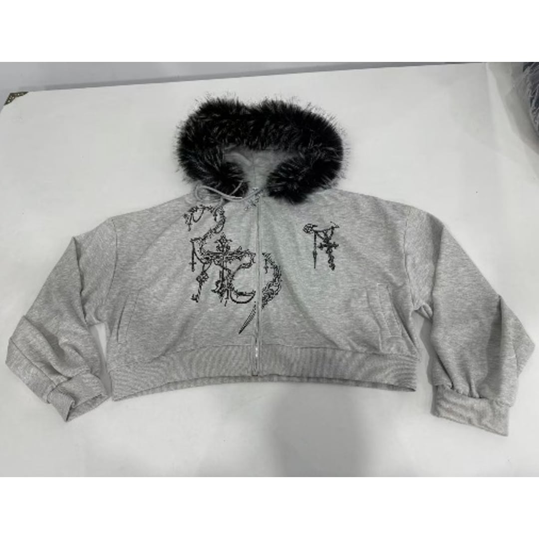 【近日発売予定】クロスチェーンプリント ファーZIPパーカー(ショート丈)