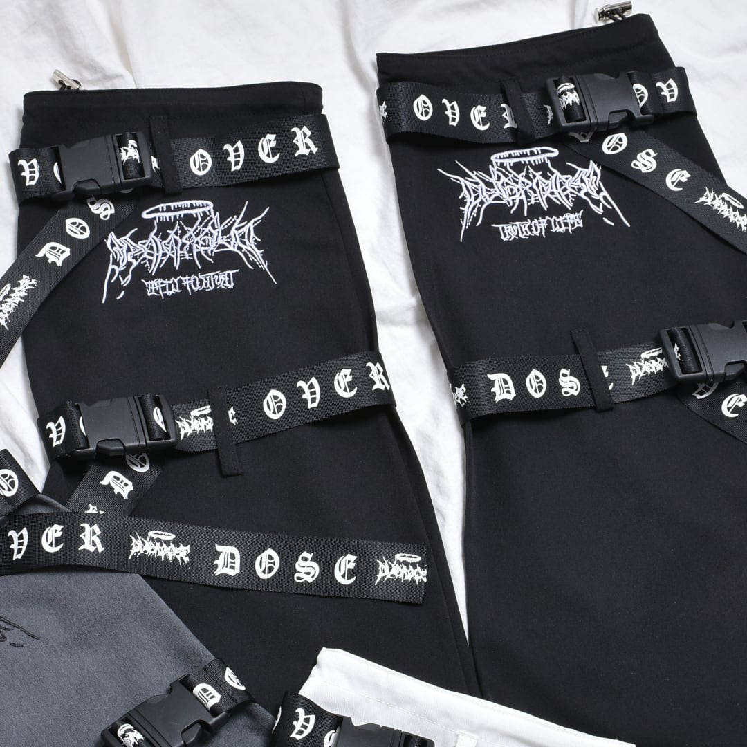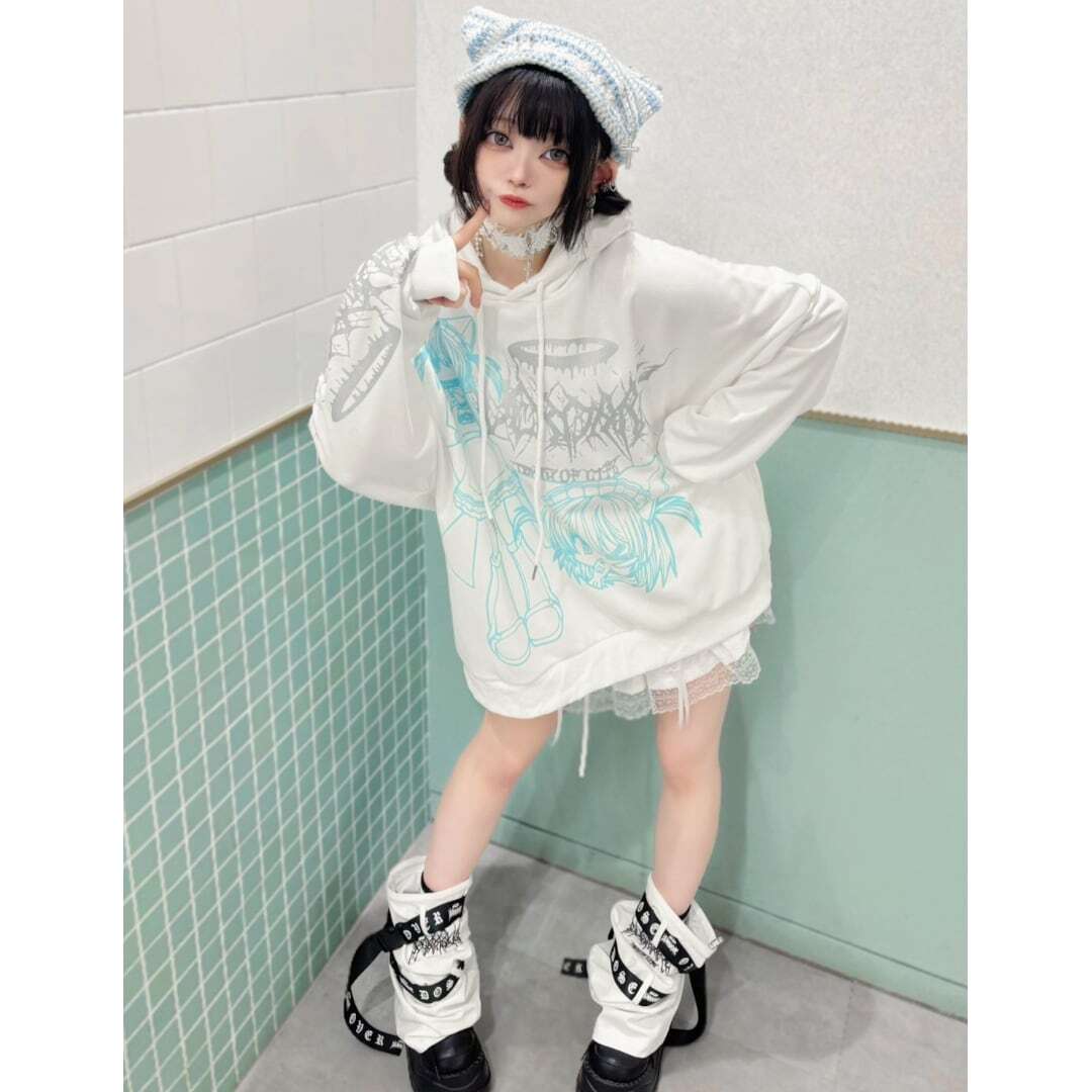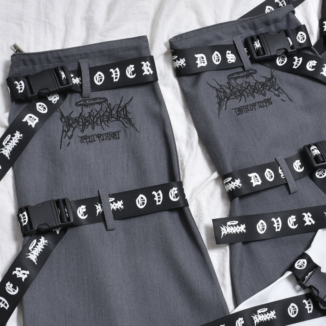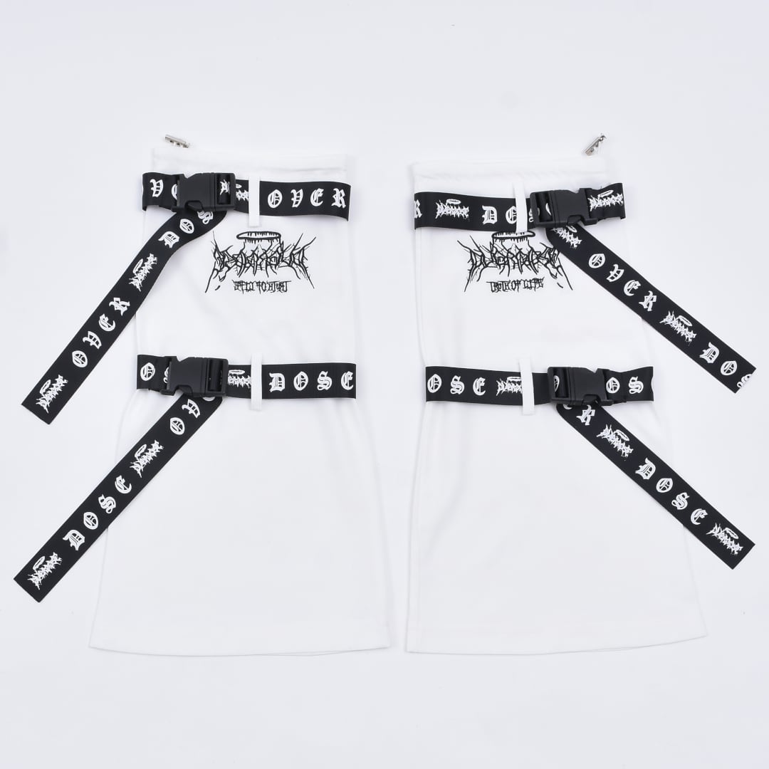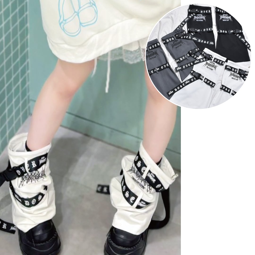 サブカルな刺繍やベルトがアクセントになったレッグウォーマー