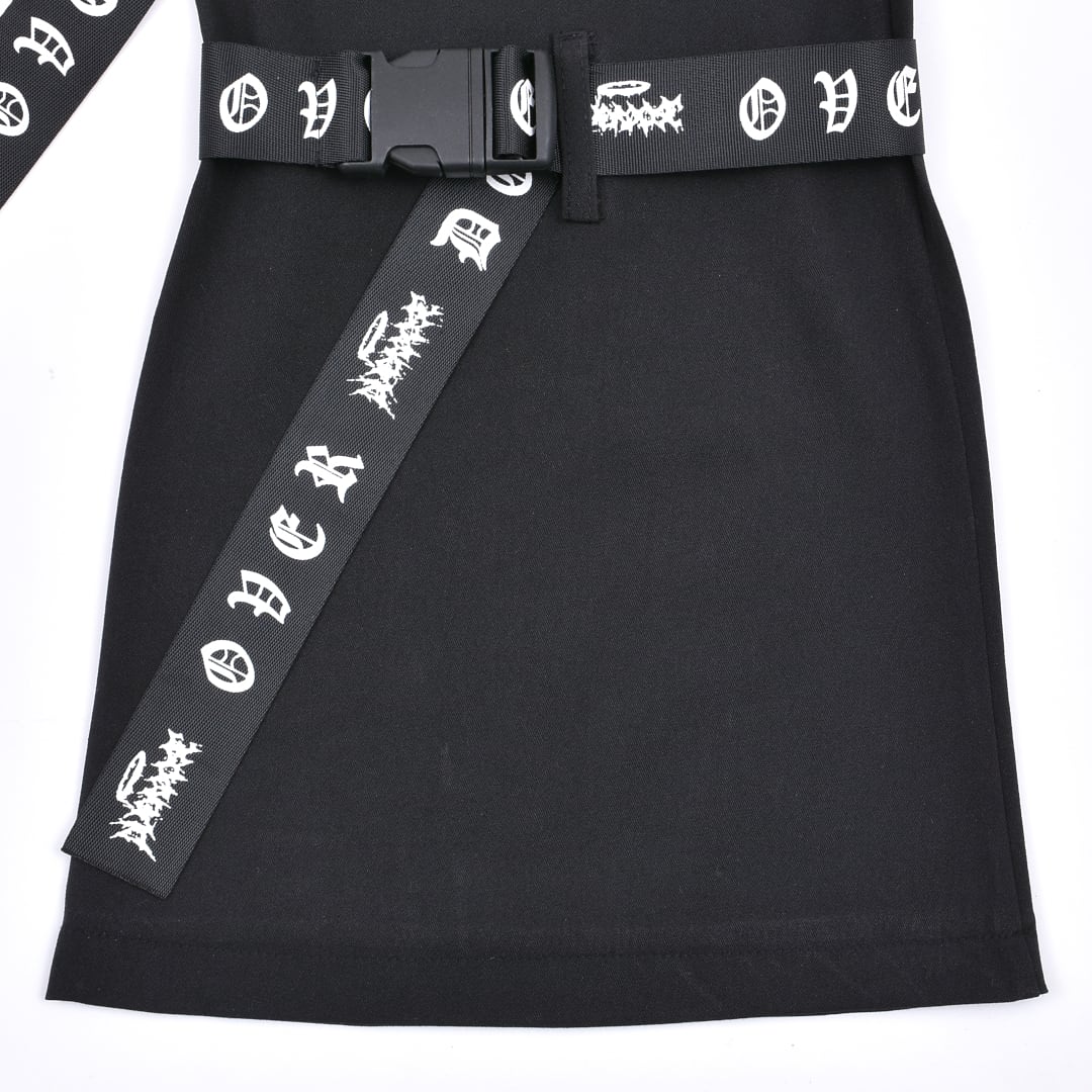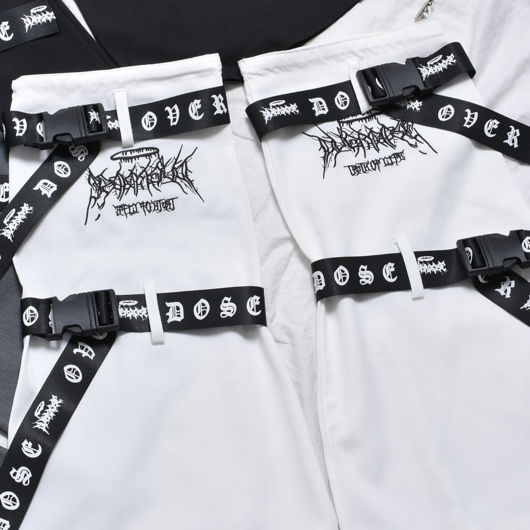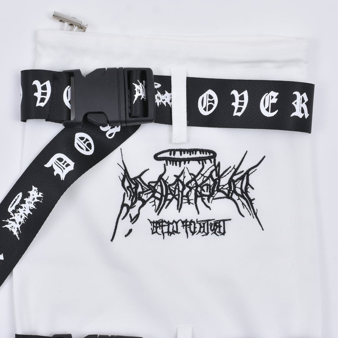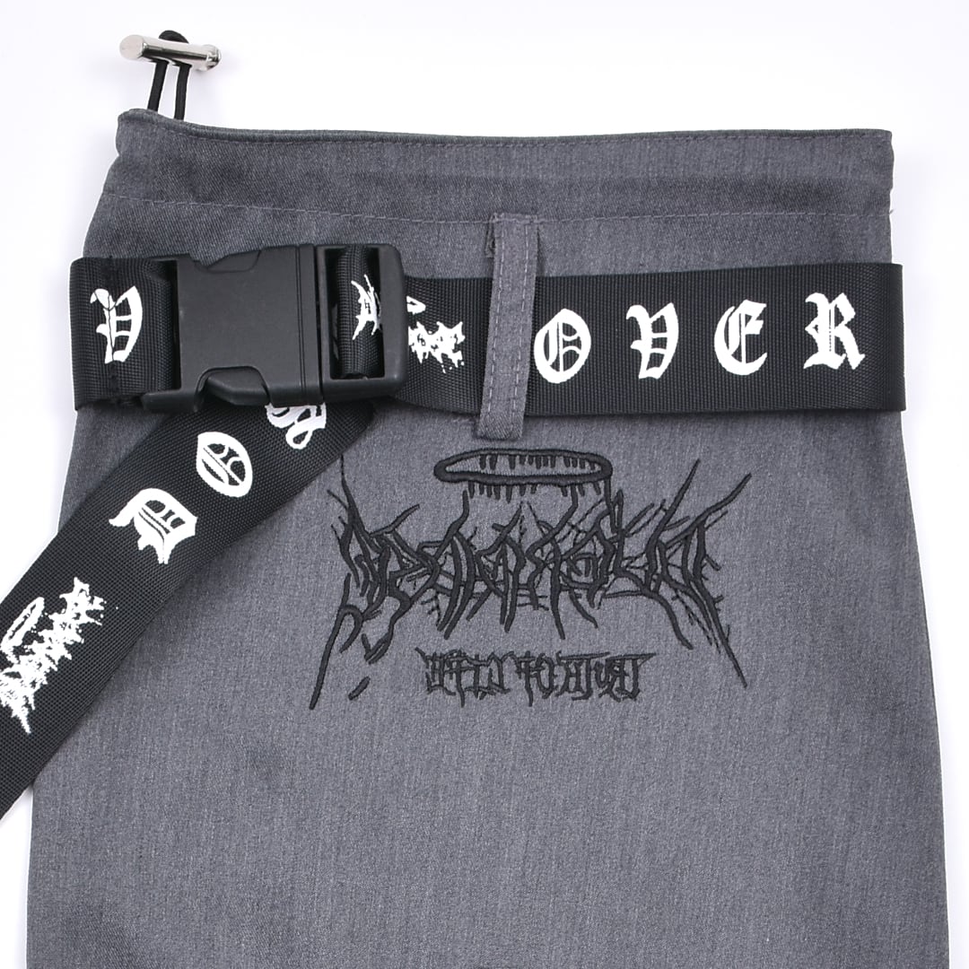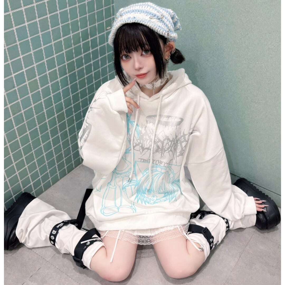 サブカルな刺繍やベルトがアクセントになったレッグウォーマー