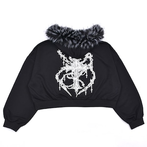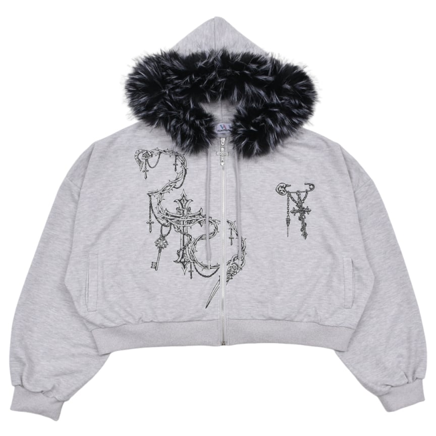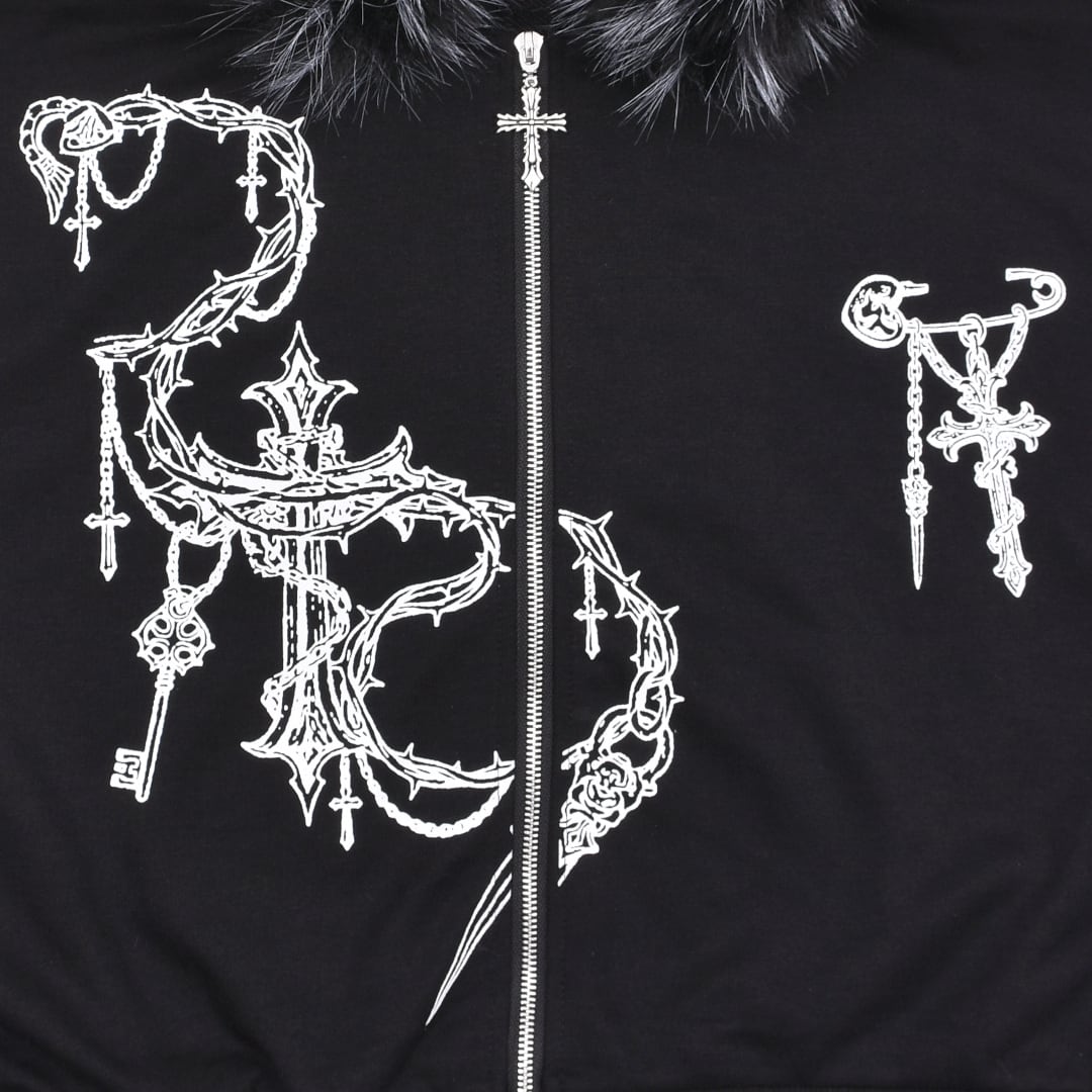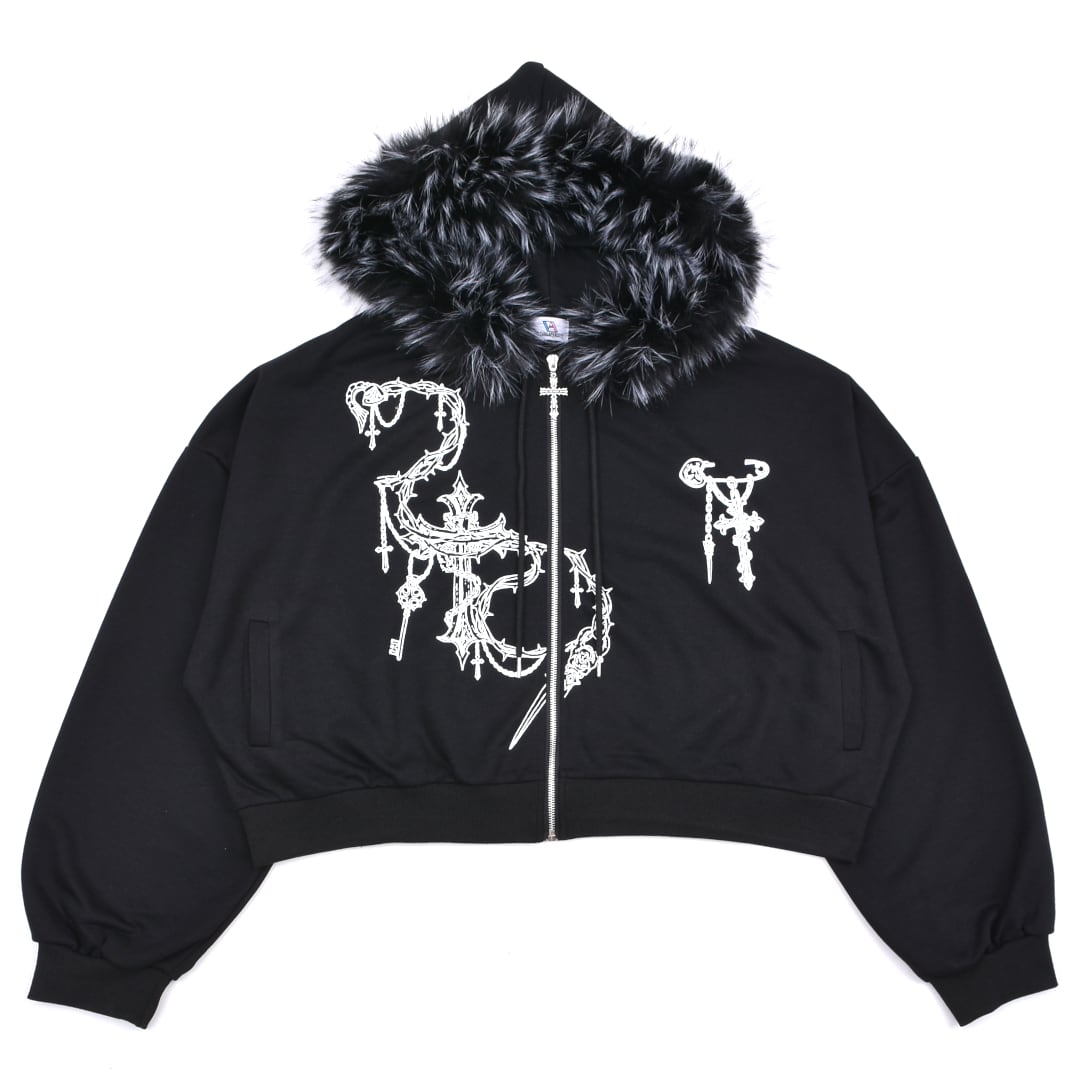 ■クロスチェーンプリント ファーZIPパーカー(ショート丈)