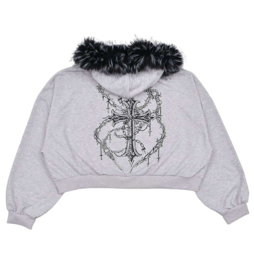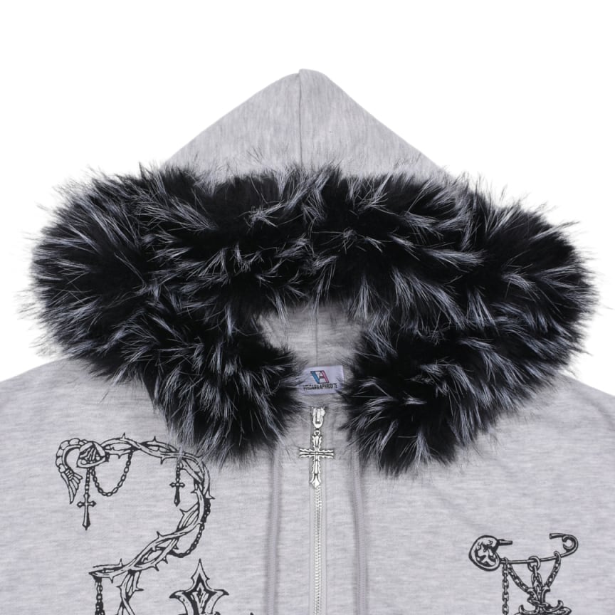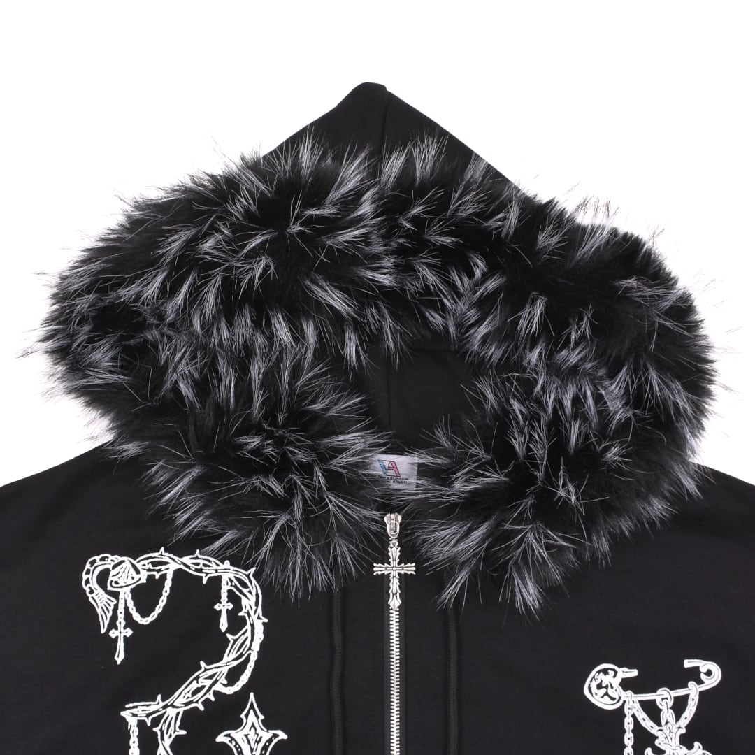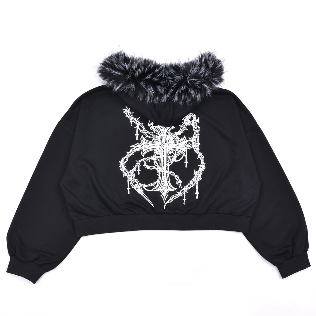 ■クロスチェーンプリント ファーZIPパーカー(ショート丈)