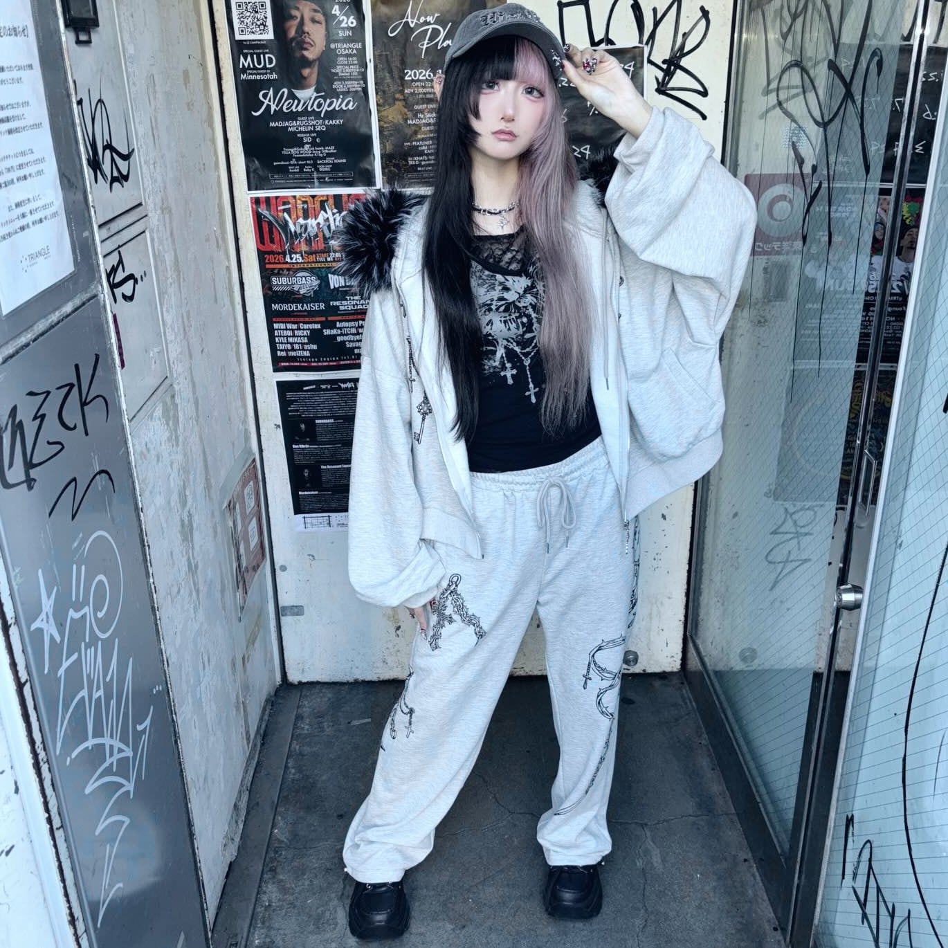 【数量限定★お得なセットアップ商品】ショート丈ZIPパーカー×スウェットパンツ(クロスチェーンプリント)