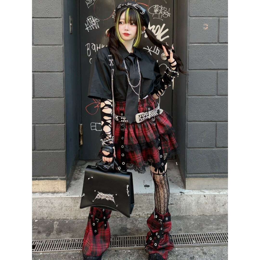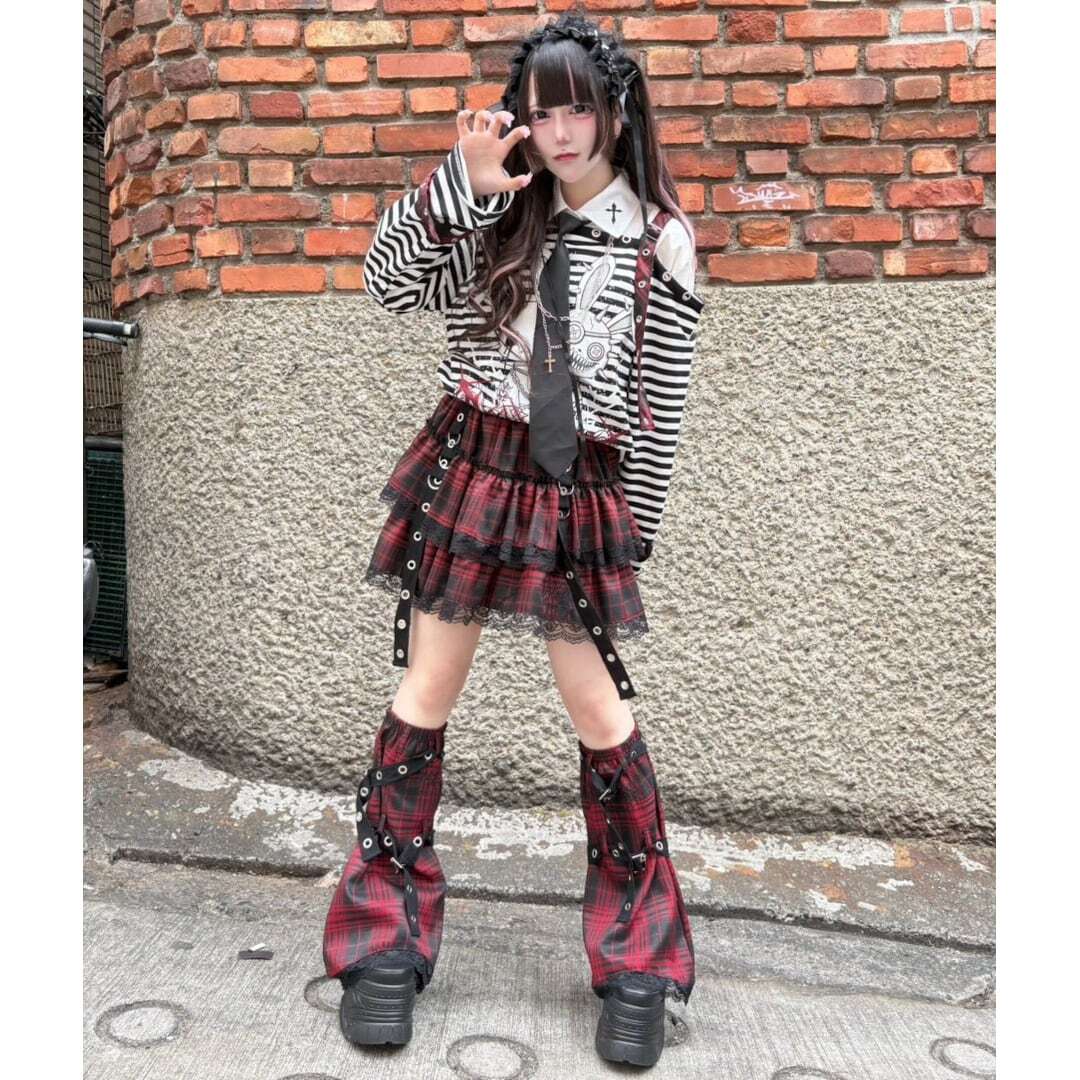 【数量限定★お得なセットアイテム】赤黒サブカルミニスカ+レッグウォーマー