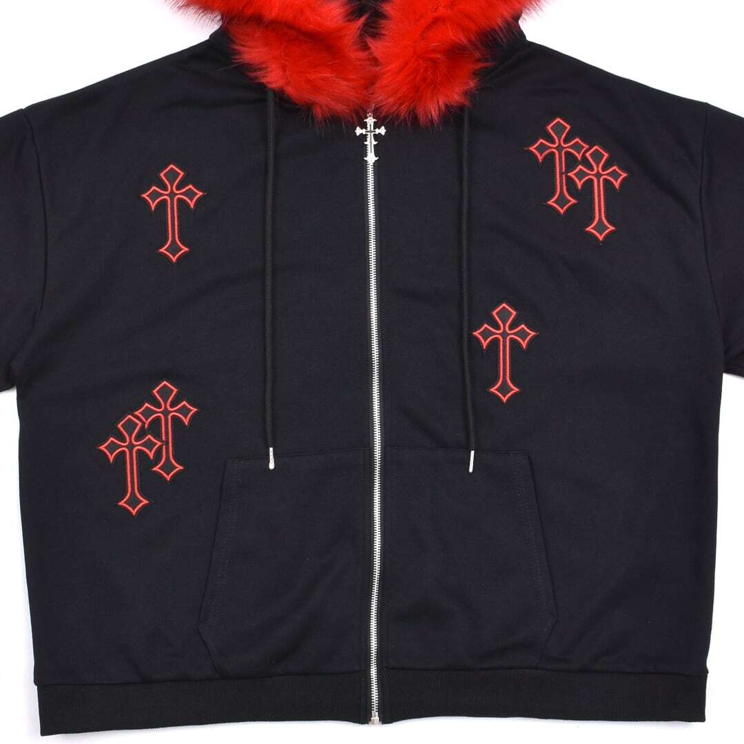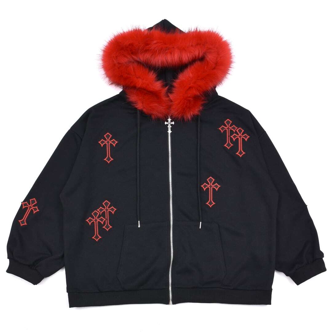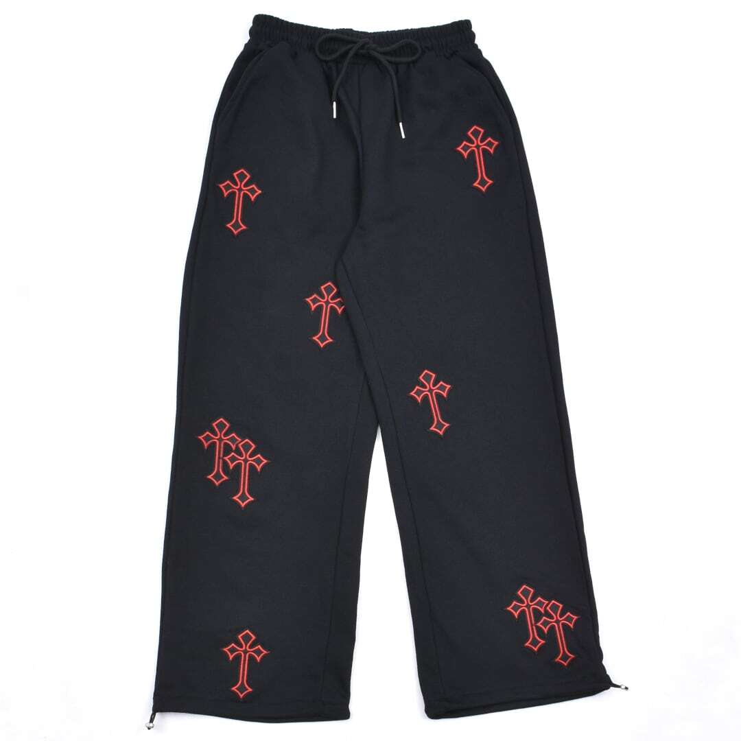 【数量限定★お得なセットアイテム】ZIPパーカー+スウェットパンツ(赤黒クロスパッチ)