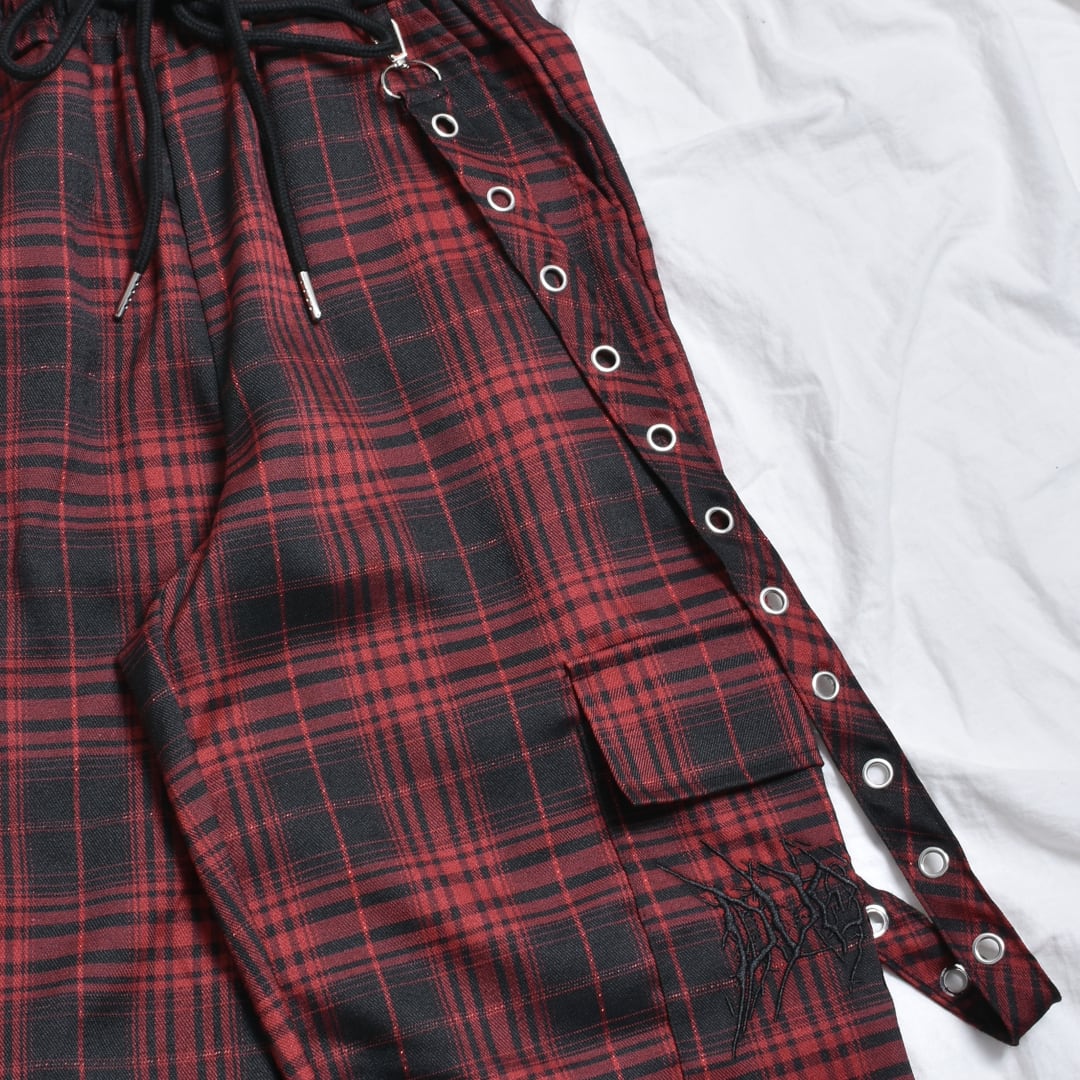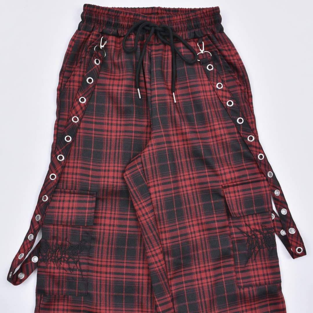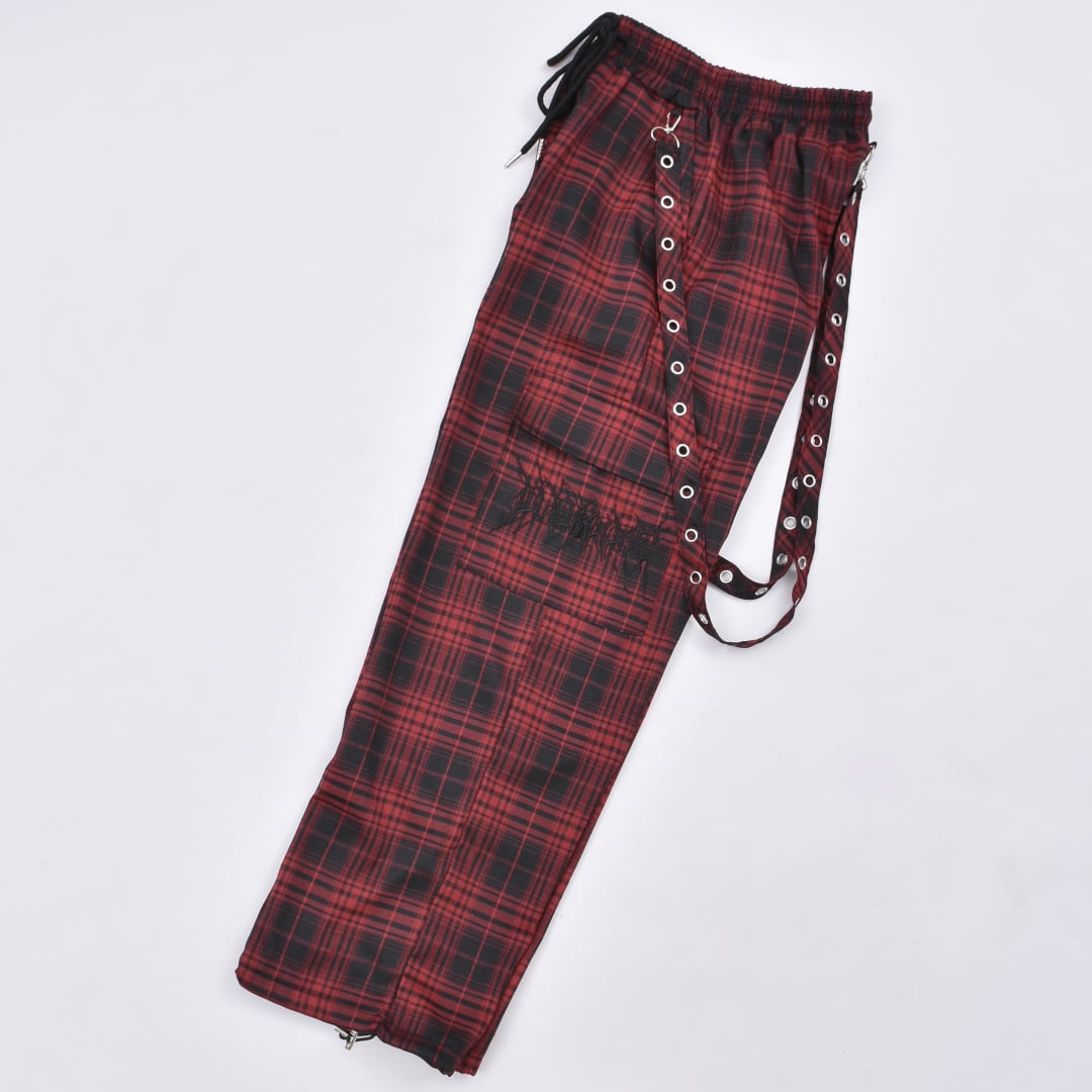 【4/3新着】サブカルロゴ チェックサスペンダーパンツ