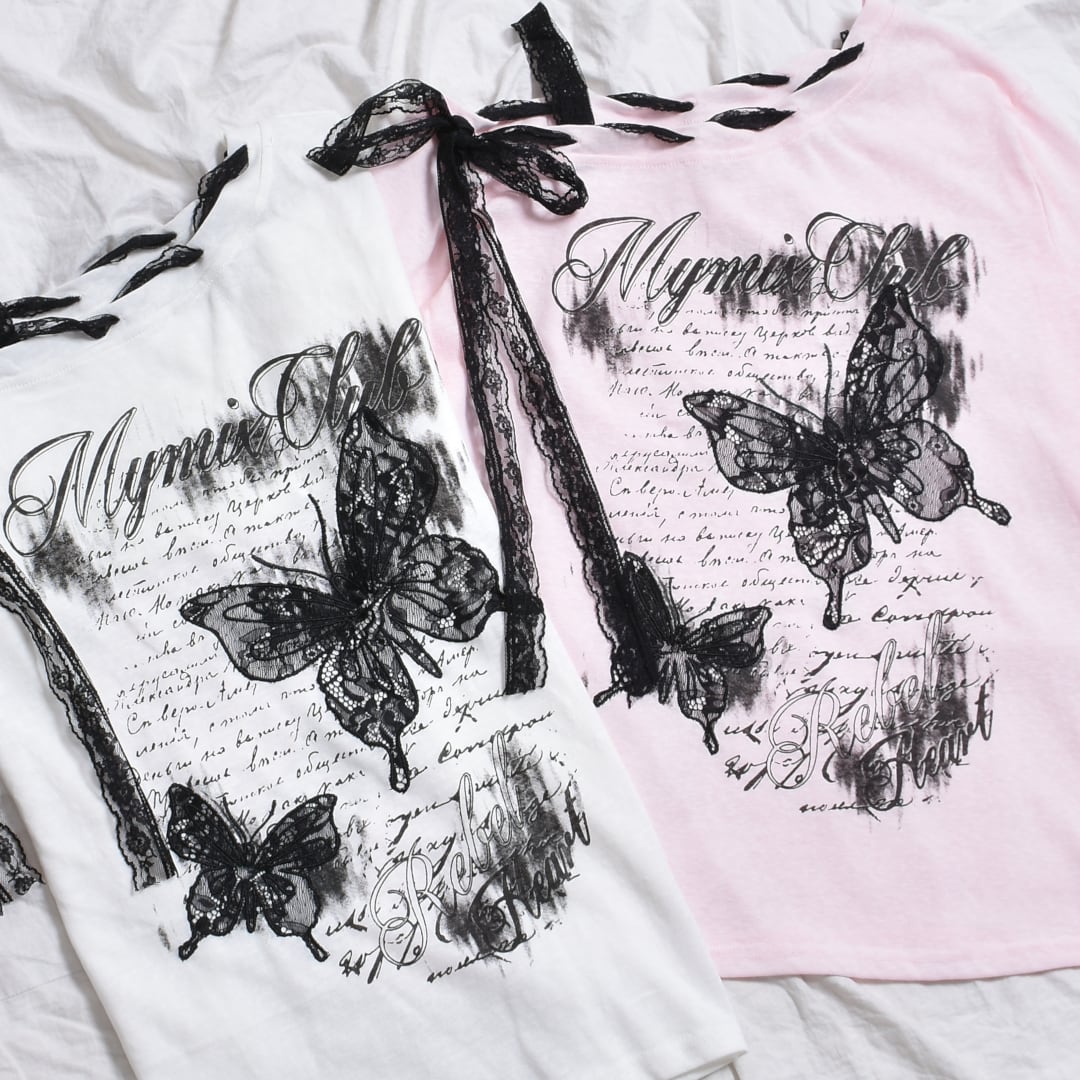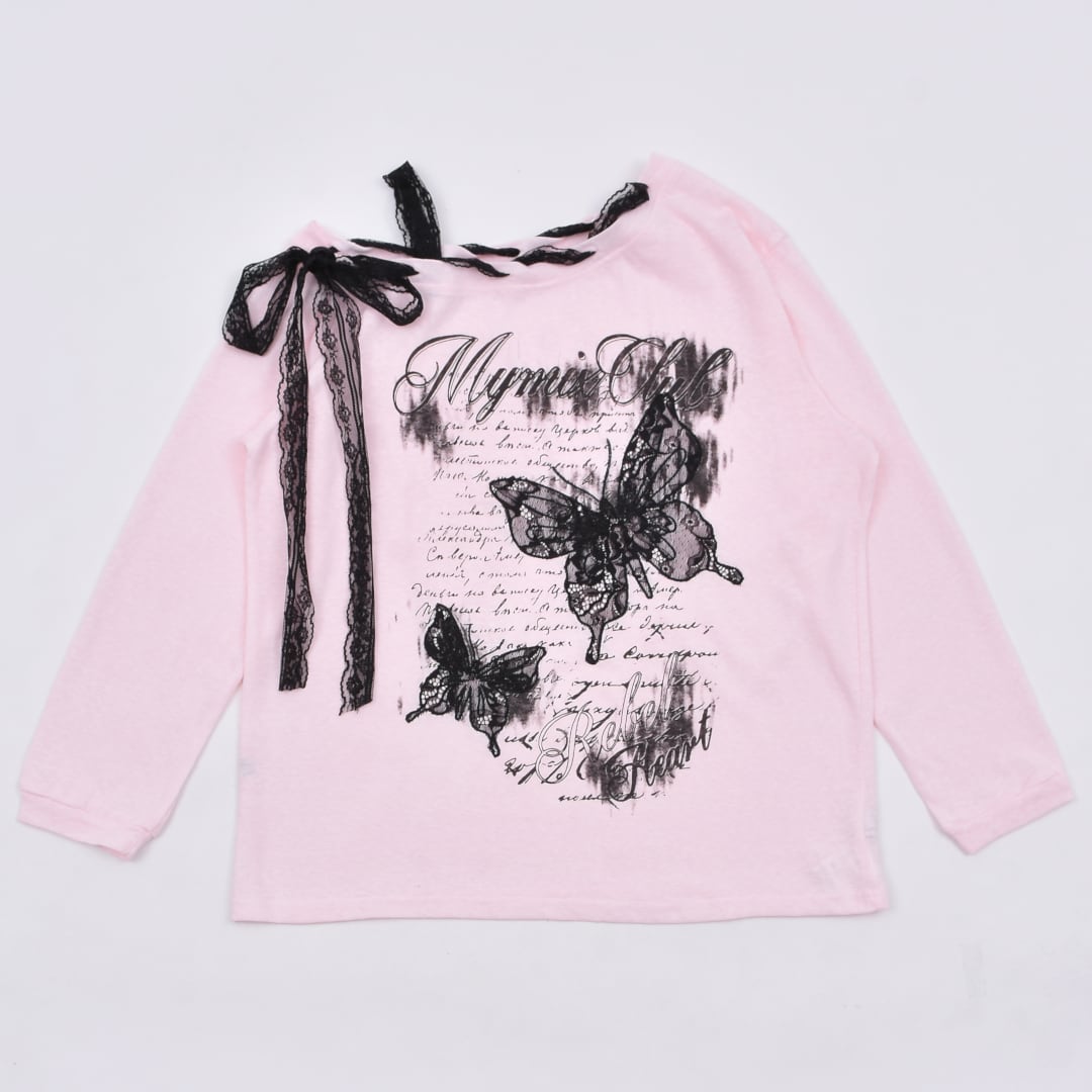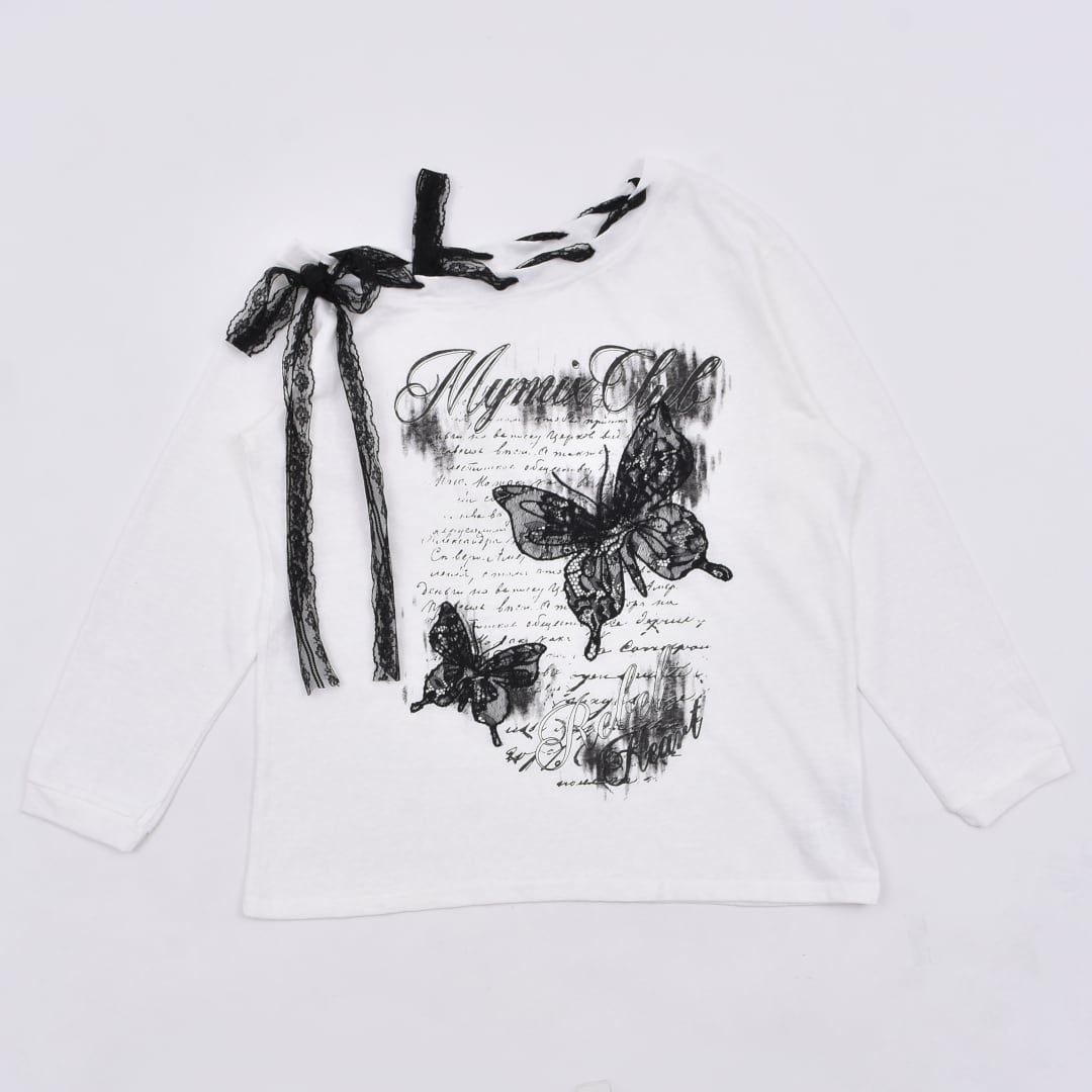 【4/6新着】Butterfly レースリボンワンショルロンT