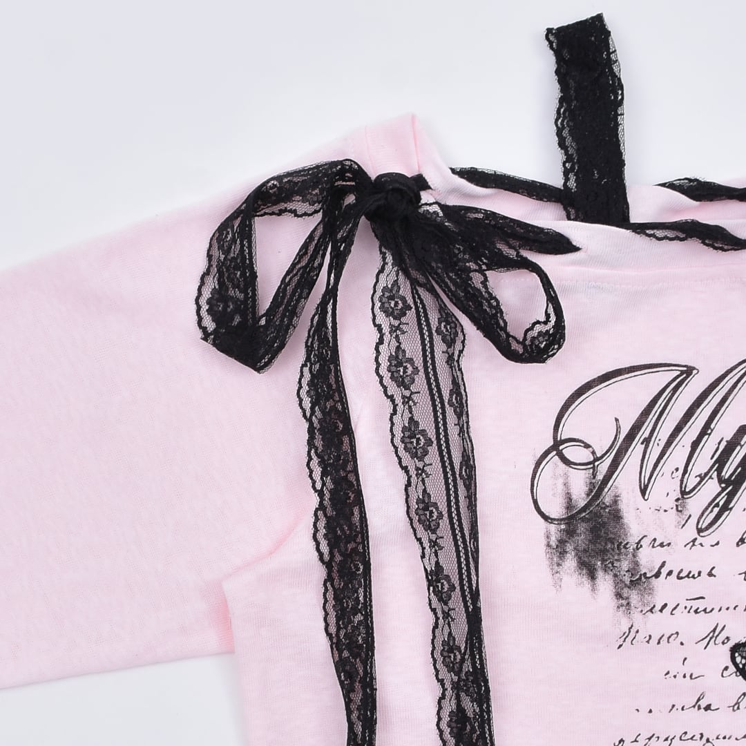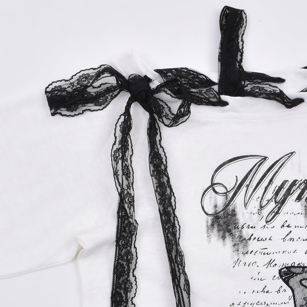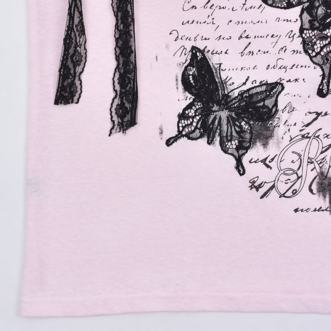 【4/6新着】Butterfly レースリボンワンショルロンT