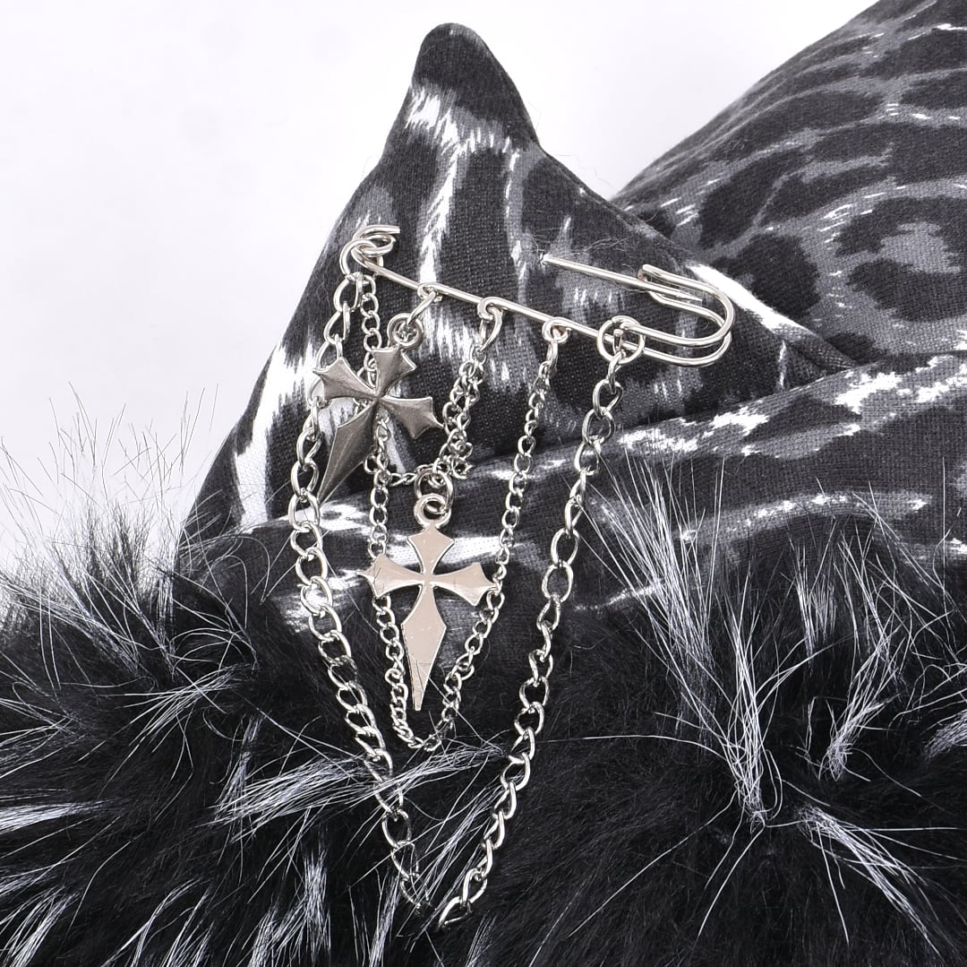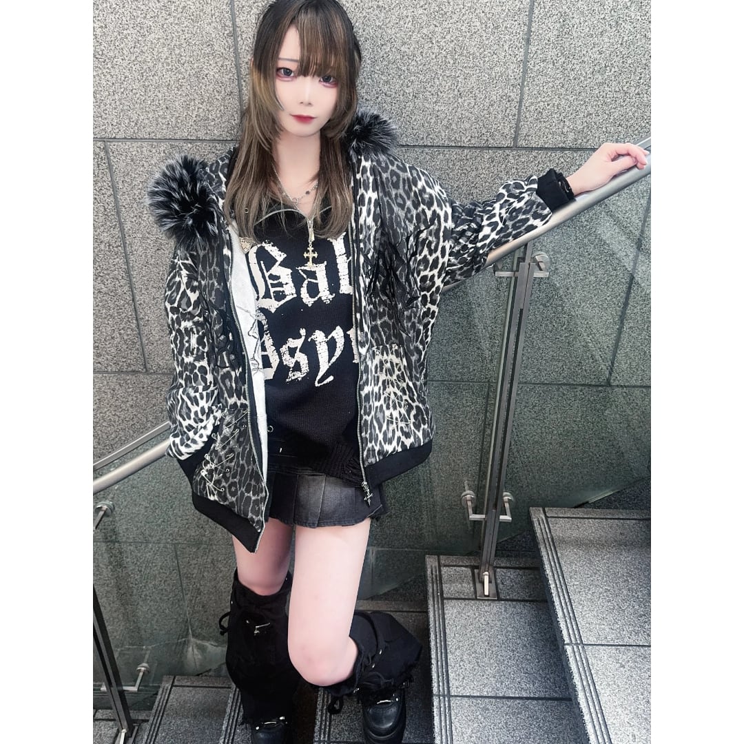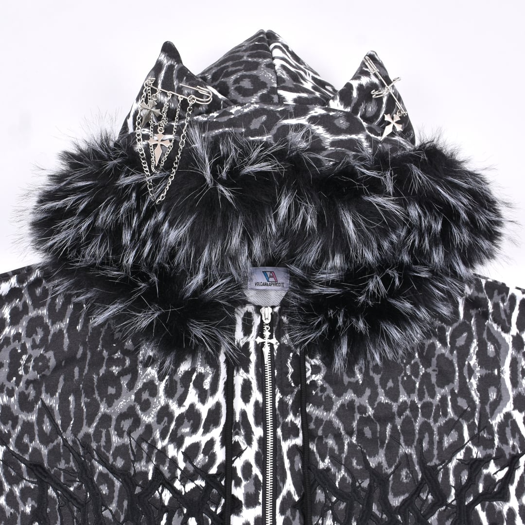 【4/7新着】ピン付き★ネコ耳ブラックレオパードファーZIPパーカー