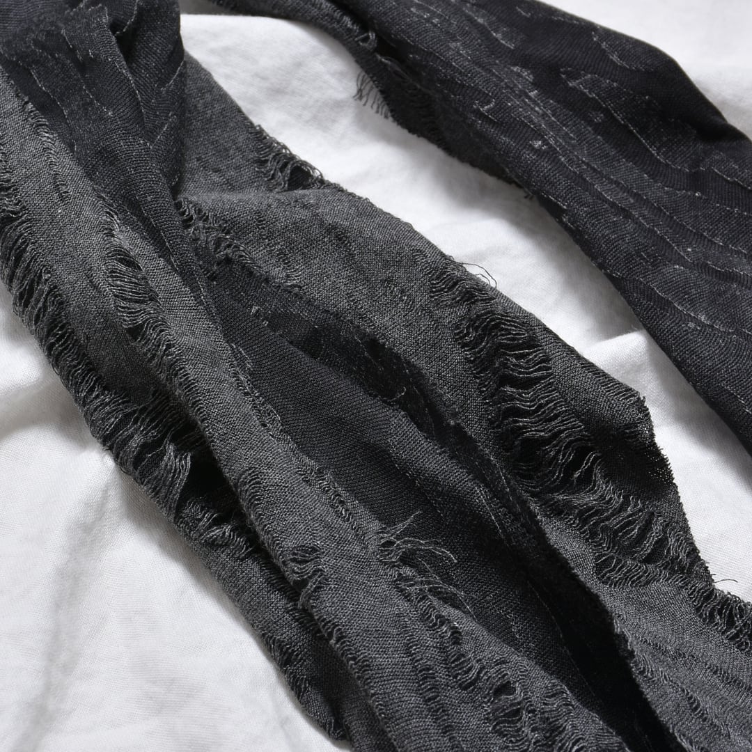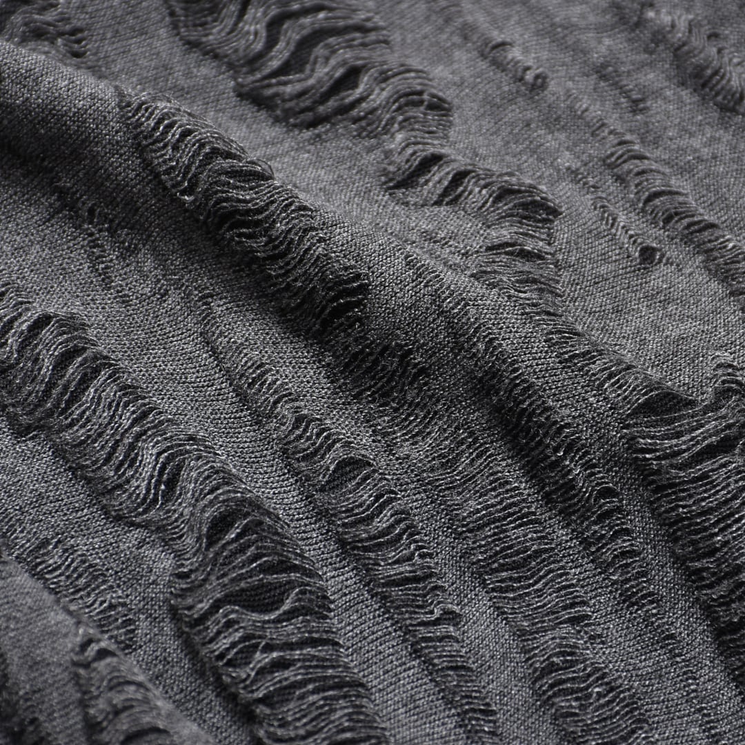 ダメージ加工を施したニットライクな生地感を使用。
