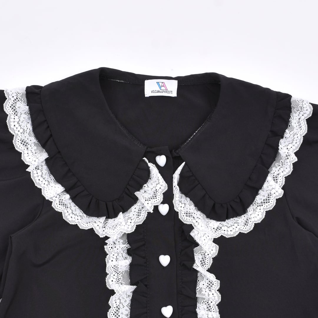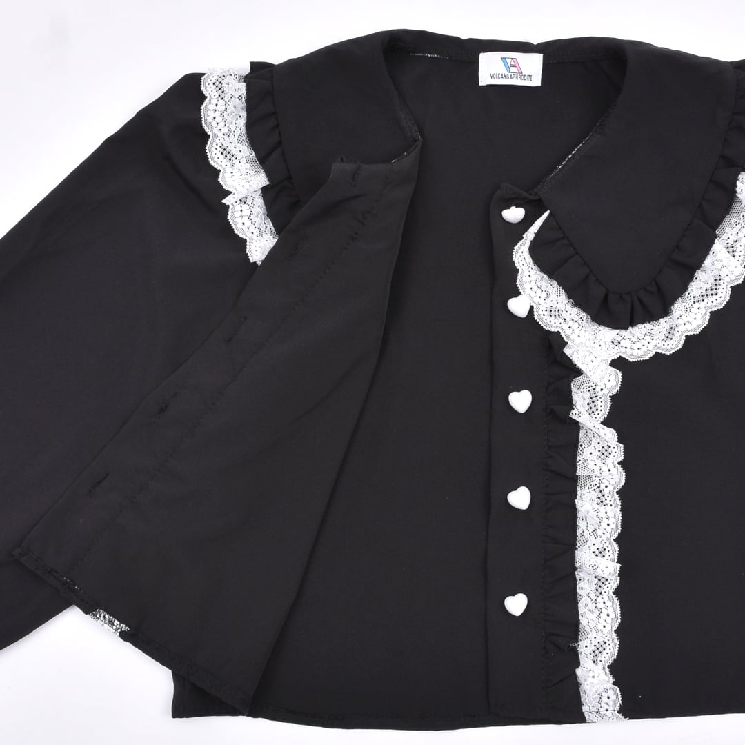 【4/10新着】フリルレースハート ショート丈ブラウス