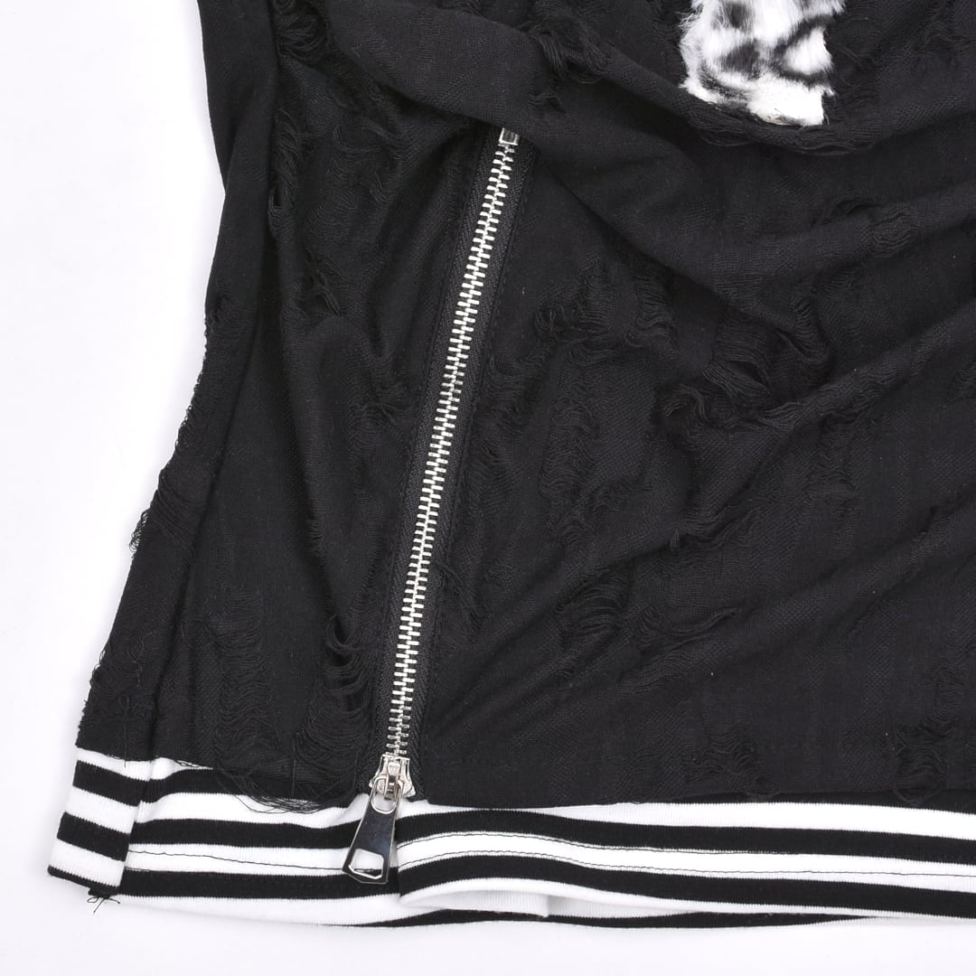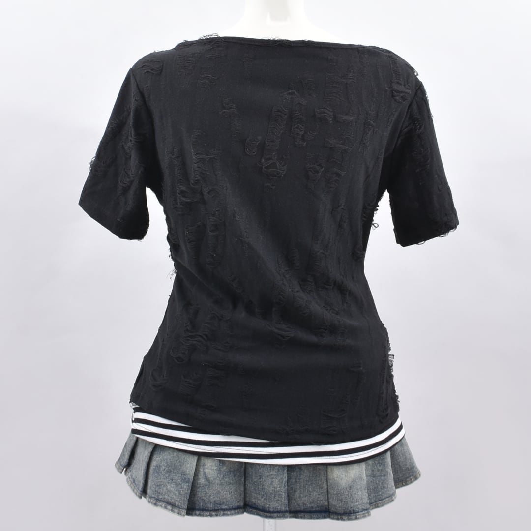 ボーダーカットソーとダメージ系カットソーのフェイクレイヤードデザイン