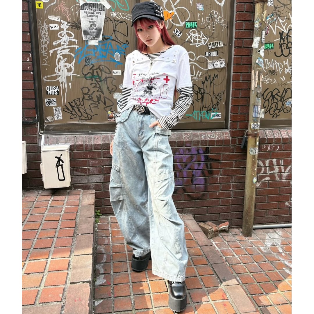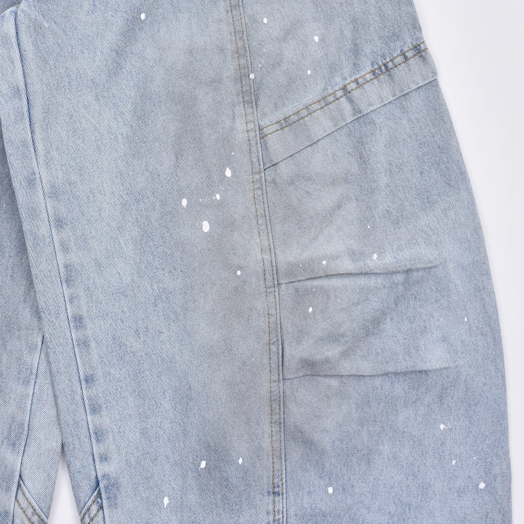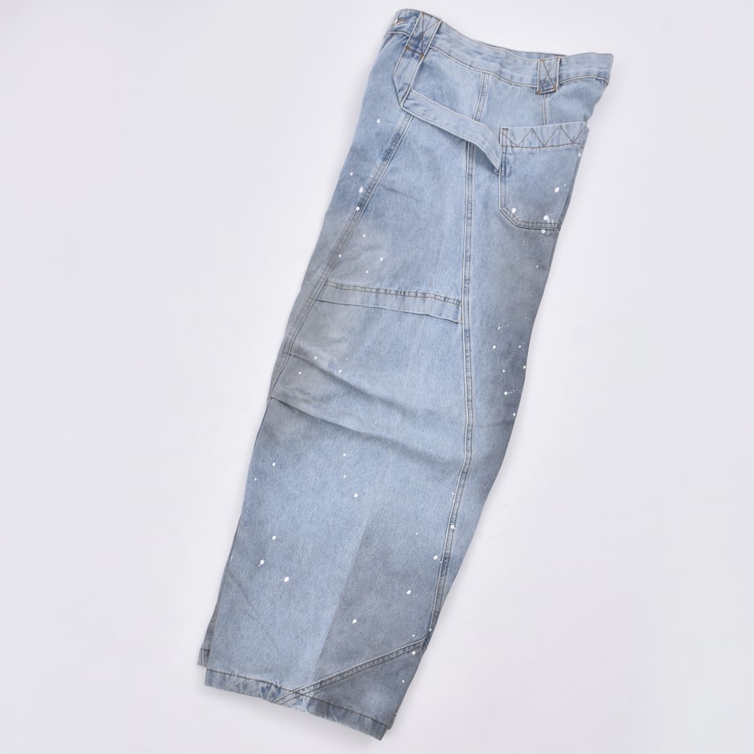 随所に施したタックデザイン、ペンキ、オイルをイメージした汚れ加工がインパクトを放つ一品。
