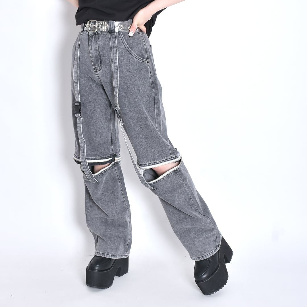 ベルト×ZIPデザインデニムパンツ