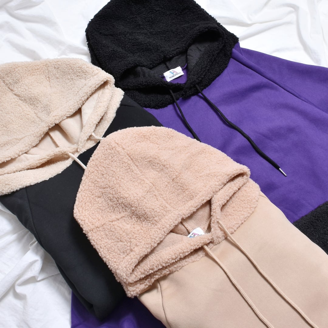 切り替えのボアが季節感あふれるBIGパーカー。