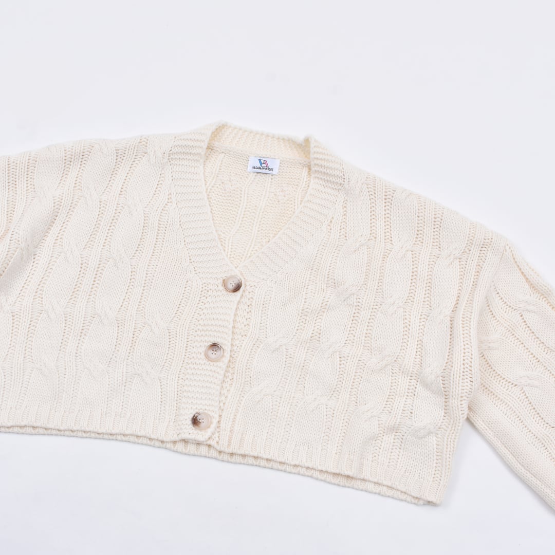 季節の変わり目などにサッと羽織れて便利なケーブルカーディガン。