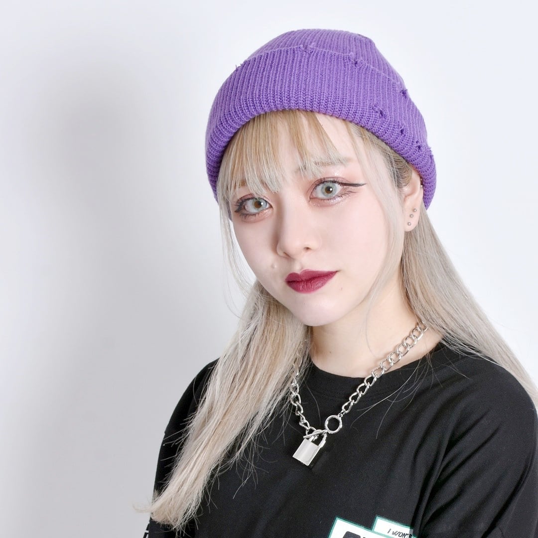 ダメージ加工のUSED感がオシャレ度をUPする、人気のハデカラーニット帽