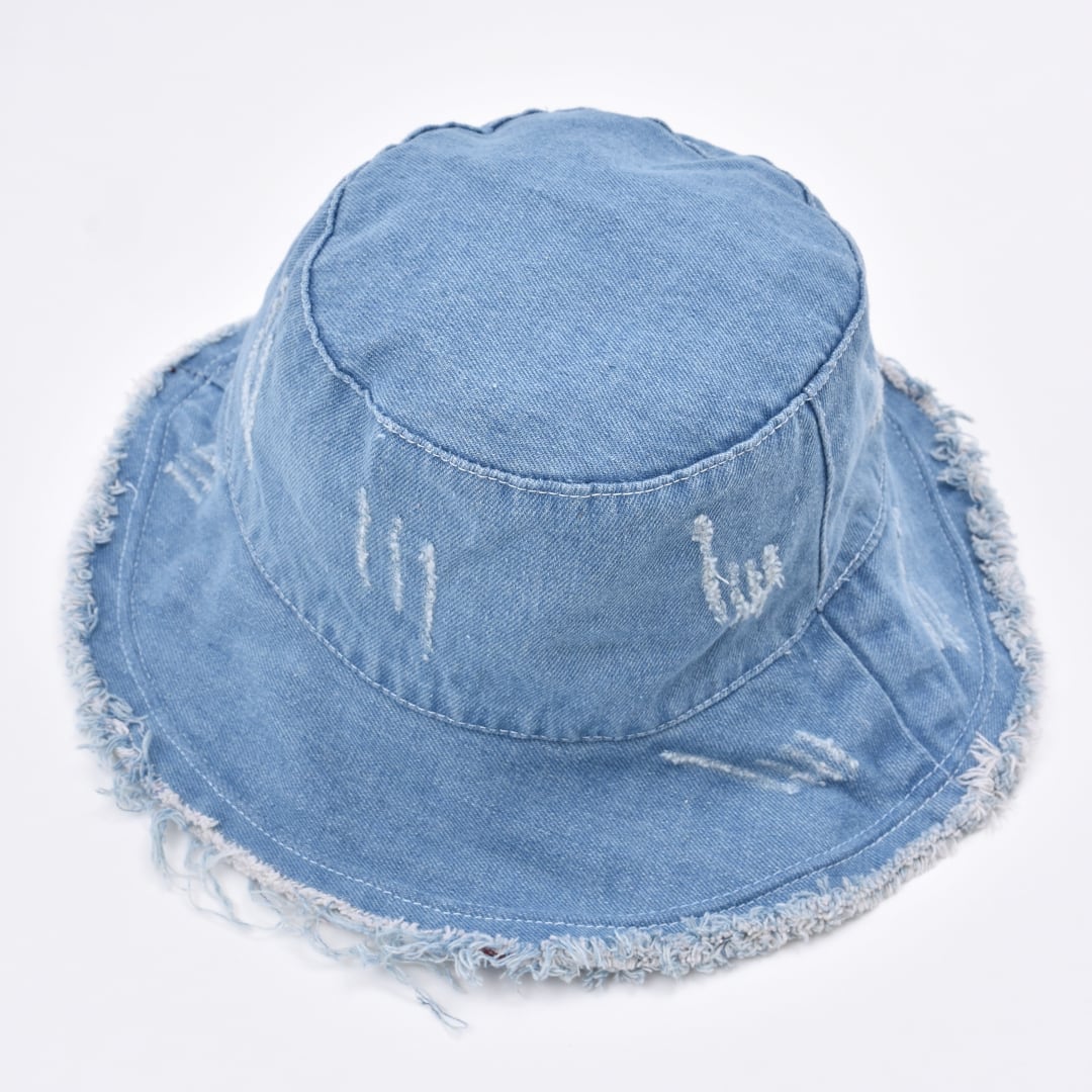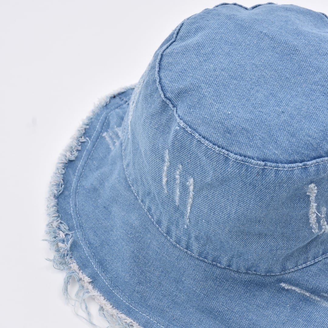 ダメージ加工とフリンジが立体的なシルエットを作る、シーズンレスなデニムバケットハット