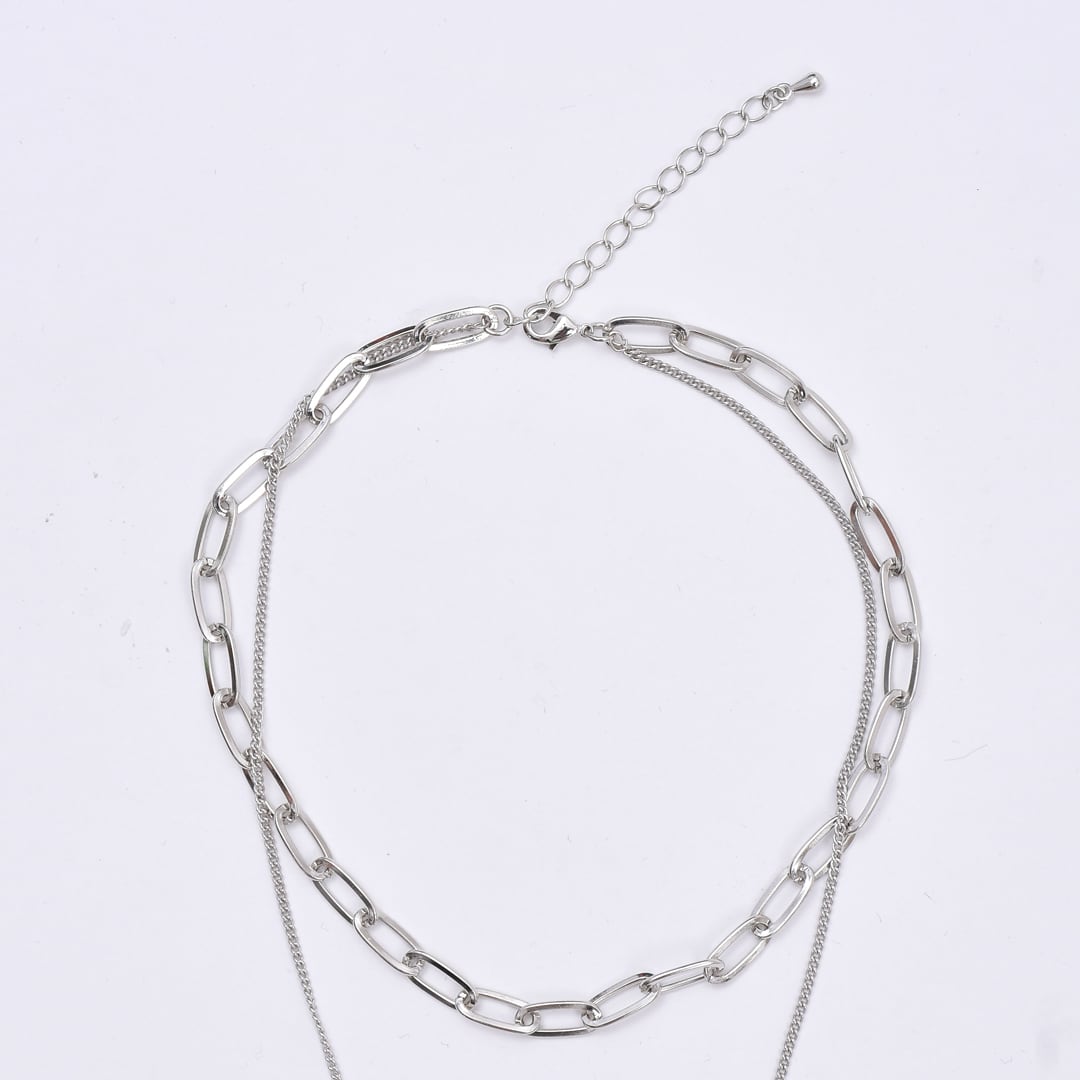 デザインの異なるチェーンが首元とスタイルのダブルアクセントになってくれるネックレス
