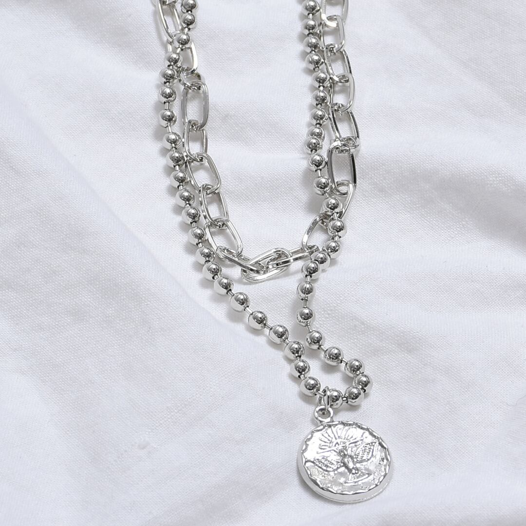 シンプルなコインデザインながら、2連のチェーンが存在感あるデザインネックレス