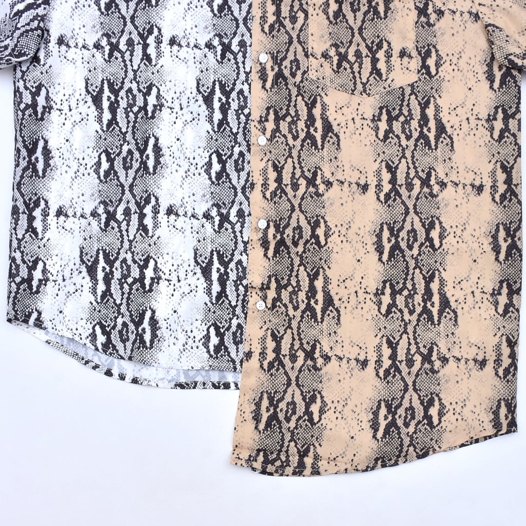 2色のパイソン柄を配色で表現したインパクトある半袖シャツ