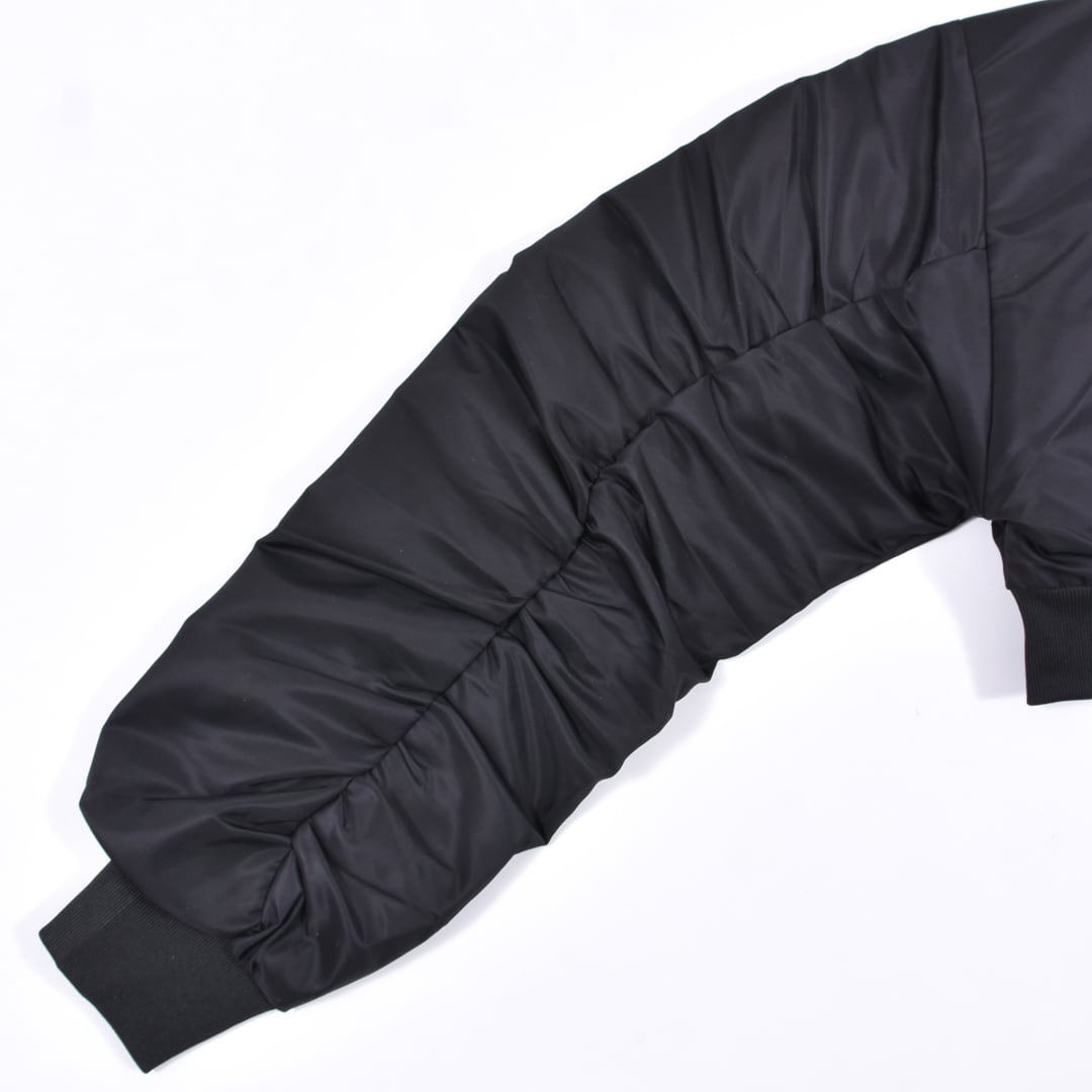 アームのバックシームはギャザーになっており、立体的なシルエットをメイク