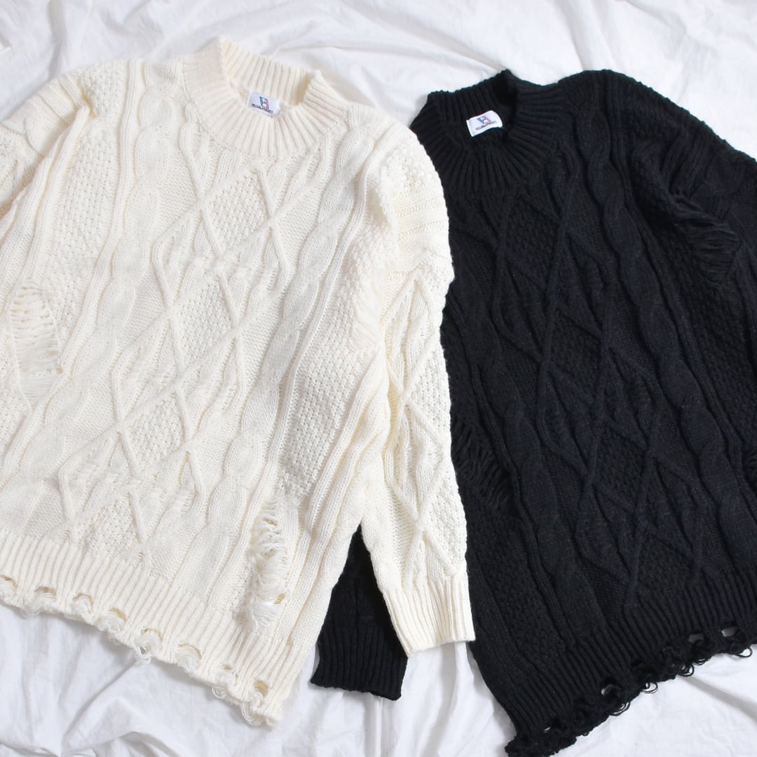 ざっくりと編まれた、ゆるダボなシルエットはワンピ風に着こなしても◎