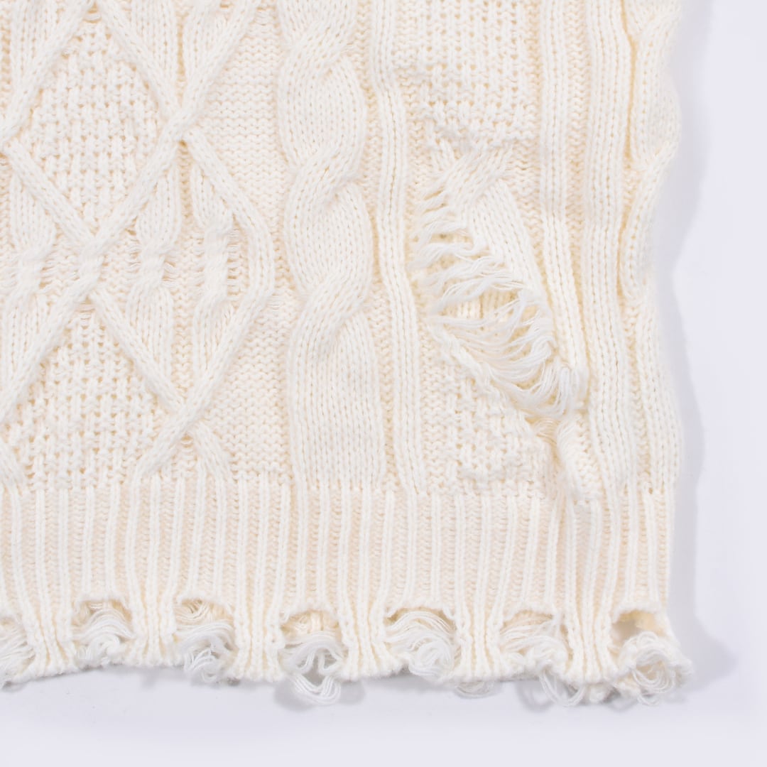 ダメージ加工がインパクトあるケーブルニット