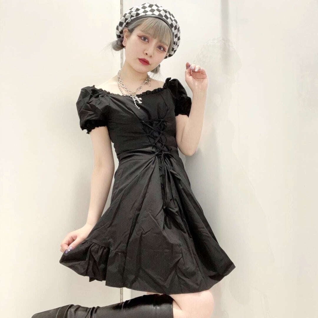 ウエストのレースアップが女の子らしさ溢れるワンピ