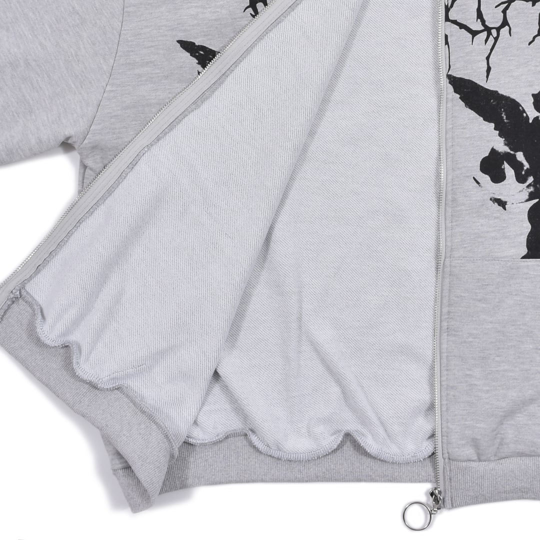天使をモチーフにした強めのプリントをONしたZIPパーカー