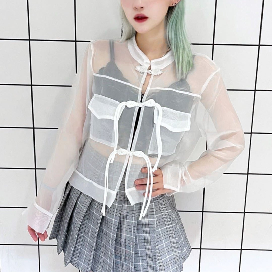 こちらは透け感あるシースルー素材が女性らしさ溢れる1枚。