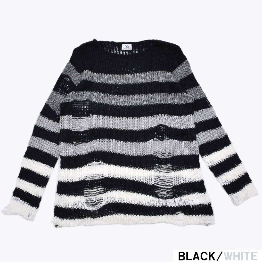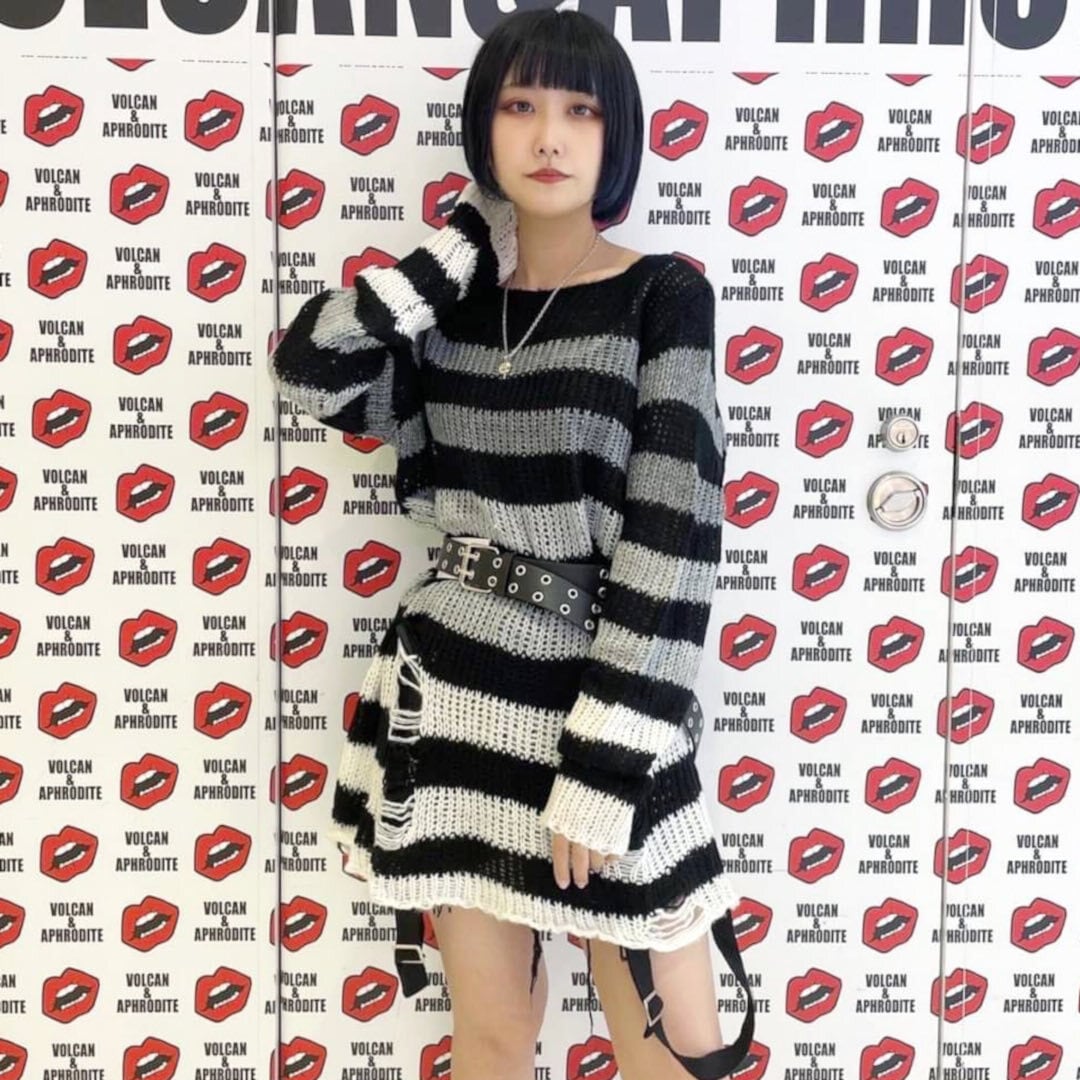 ゆるダボシルエットが可愛いワンピ風のダメージニット