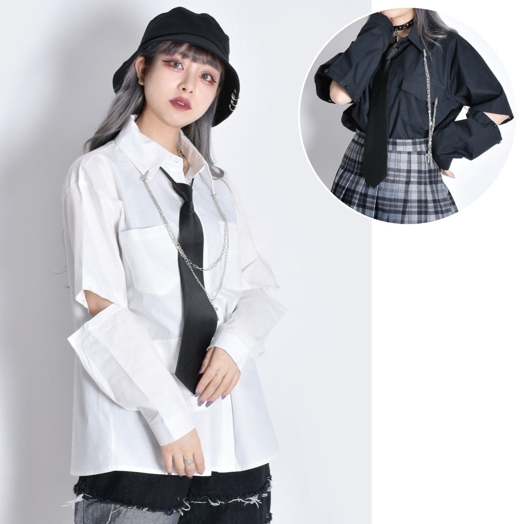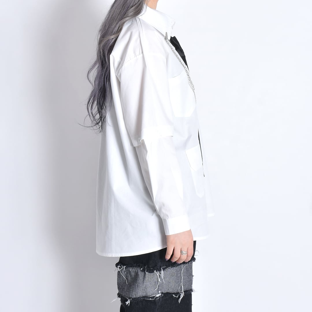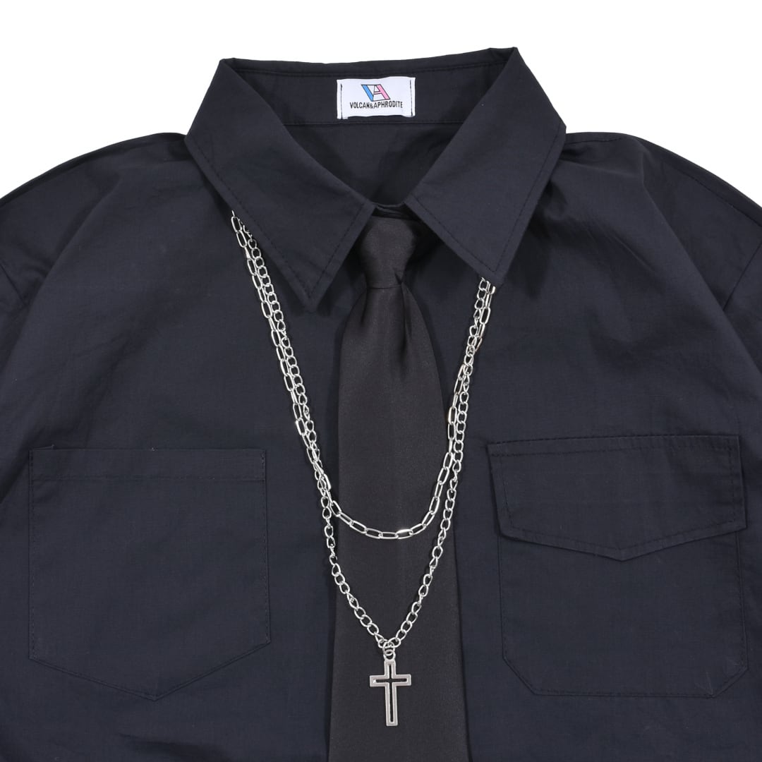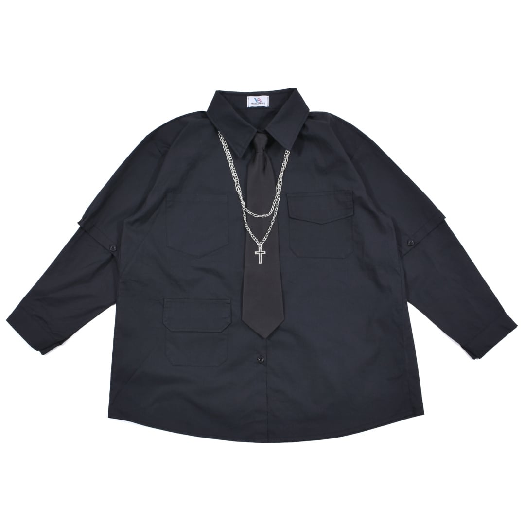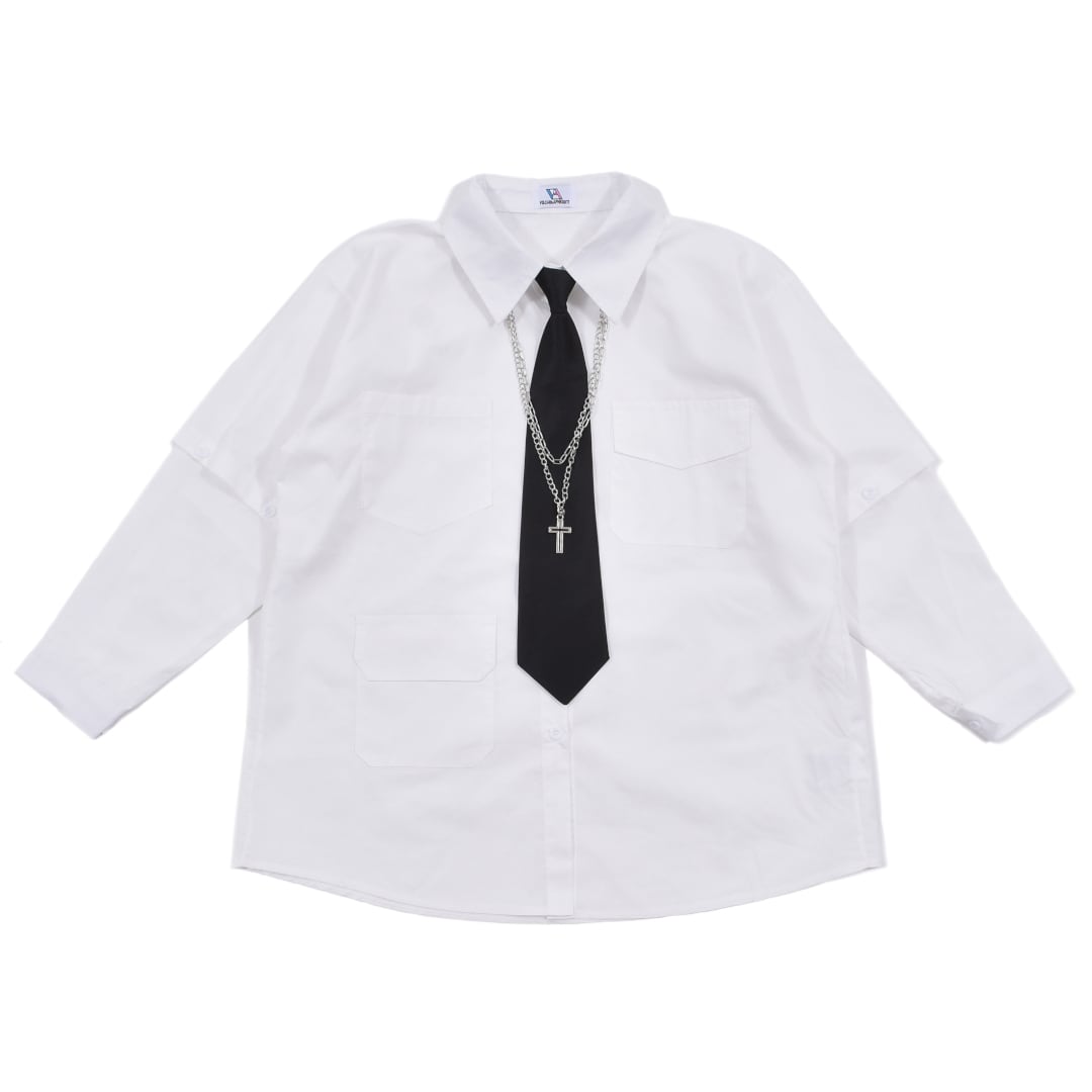 3点セット ネクタイ+2連チェーン付き 2WAYシャツ(BIGシルエット)