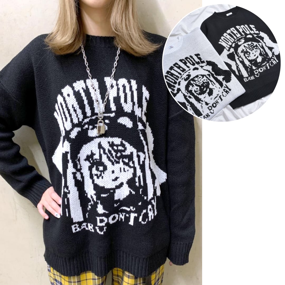 アニメ風にデザインされた、女の子のイラストが印象的なニット