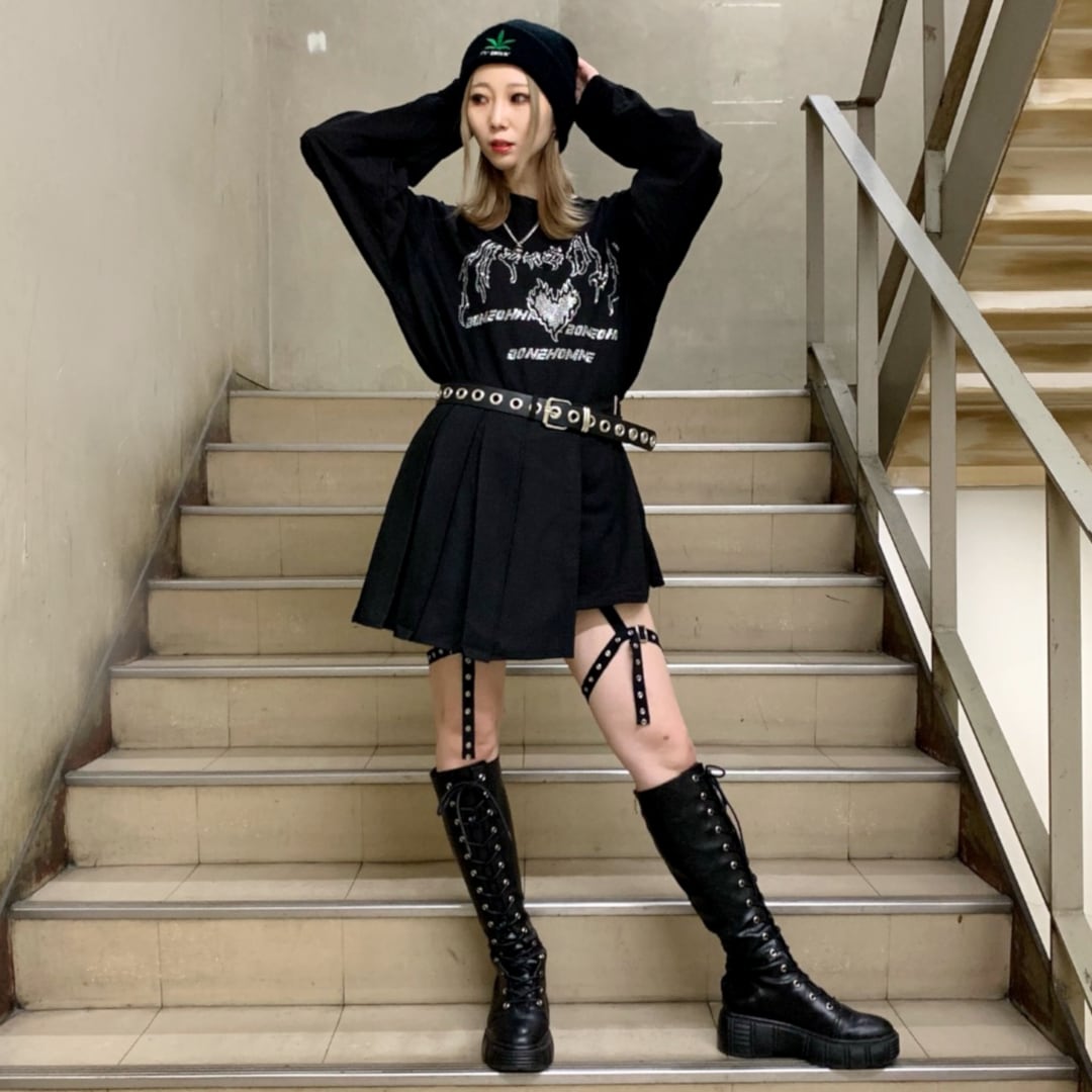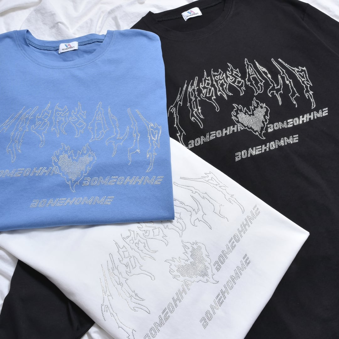 こちらはバンT風のロゴをラインストーンで表現した刺激的な一品。