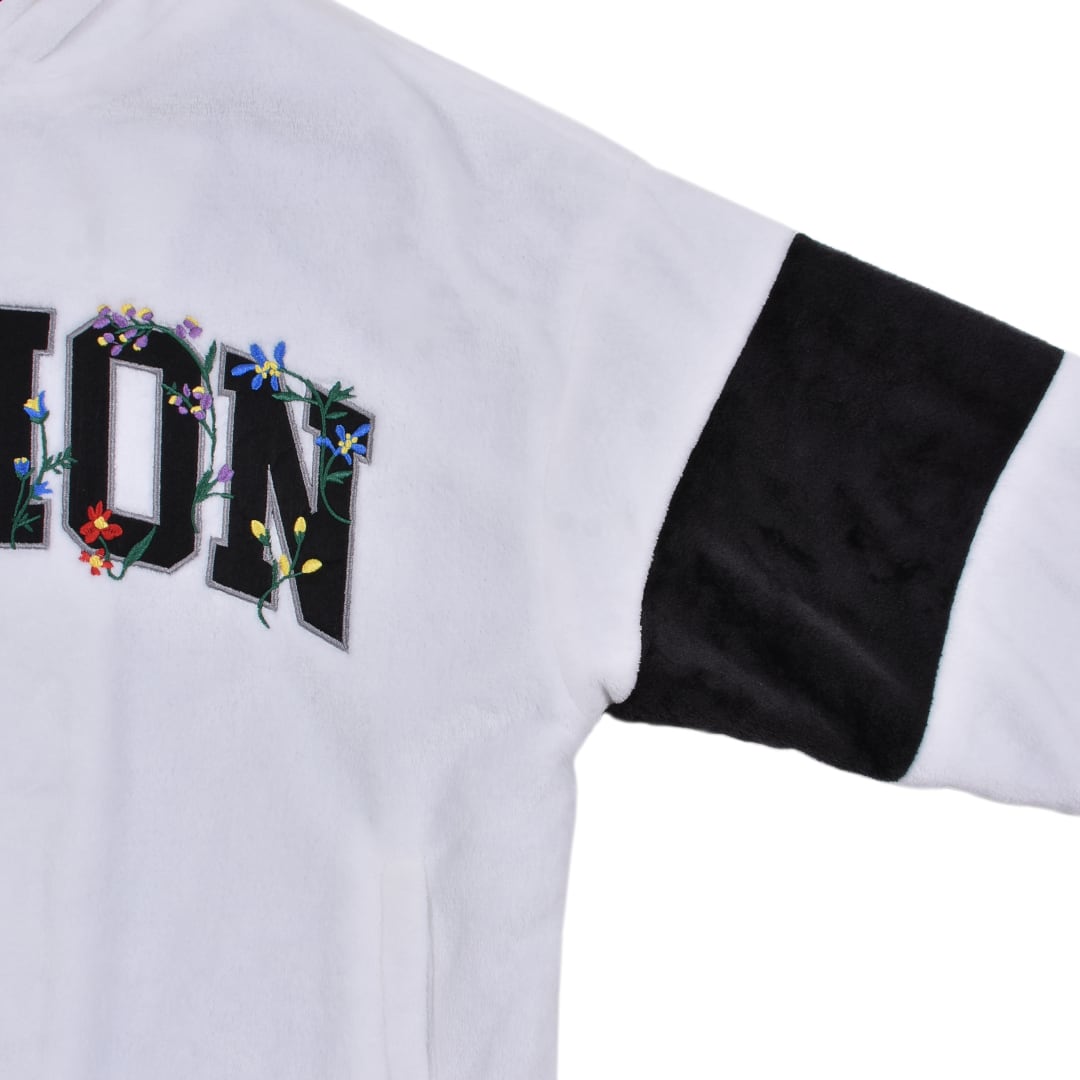 カレッジロゴとフラワー柄を組み合わせたフロントデザインが印象的。