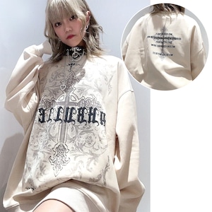 十字架と英字ロゴのMIXデザインがインパクトあるスウェット