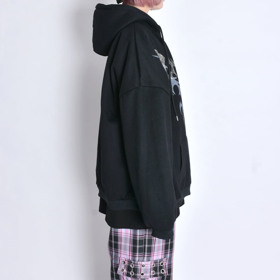 【10/1 完売WHITE再入荷!】ラインストーン トライバルZIPパーカー(裏起毛)