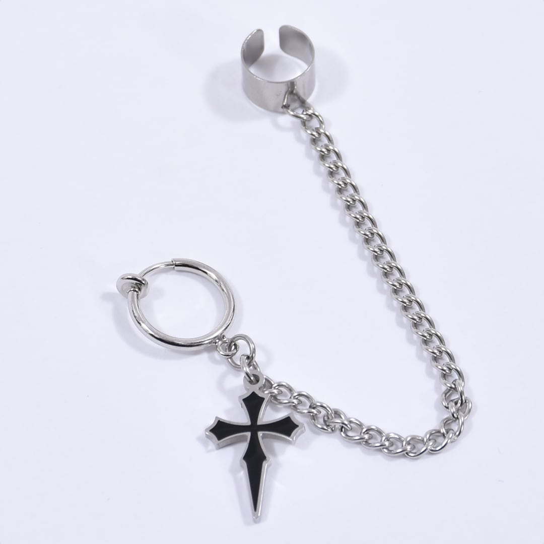 ブラックシャープクロス イヤーカフイヤリング