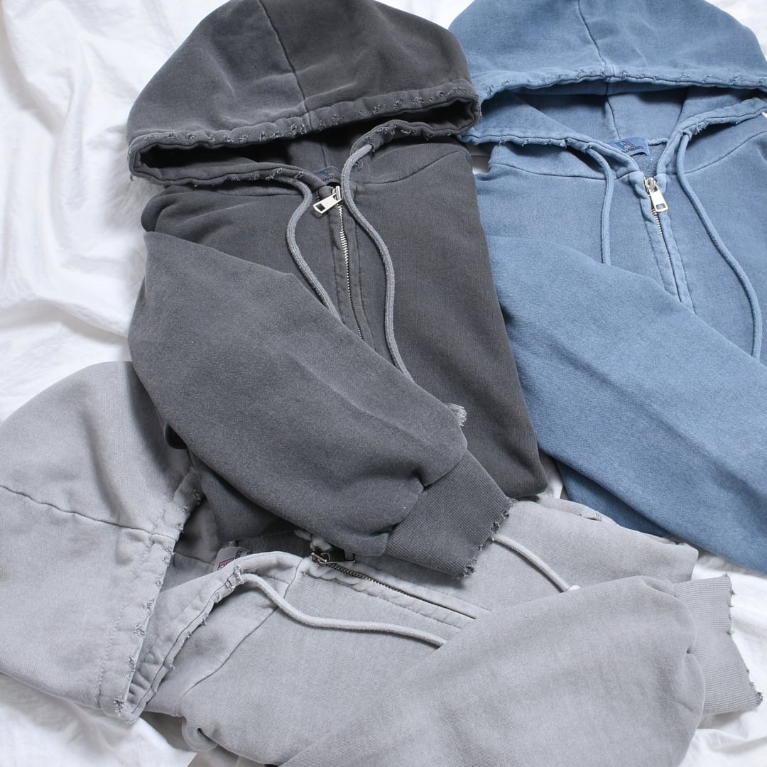 ピグメントダメージ ZIPパーカー(BIGシルエット)