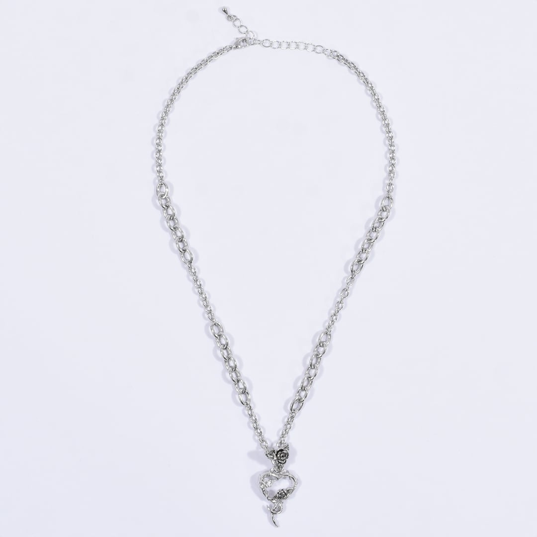 薔薇とハートを象ったミステリアスなチャームが印象的なネックレス