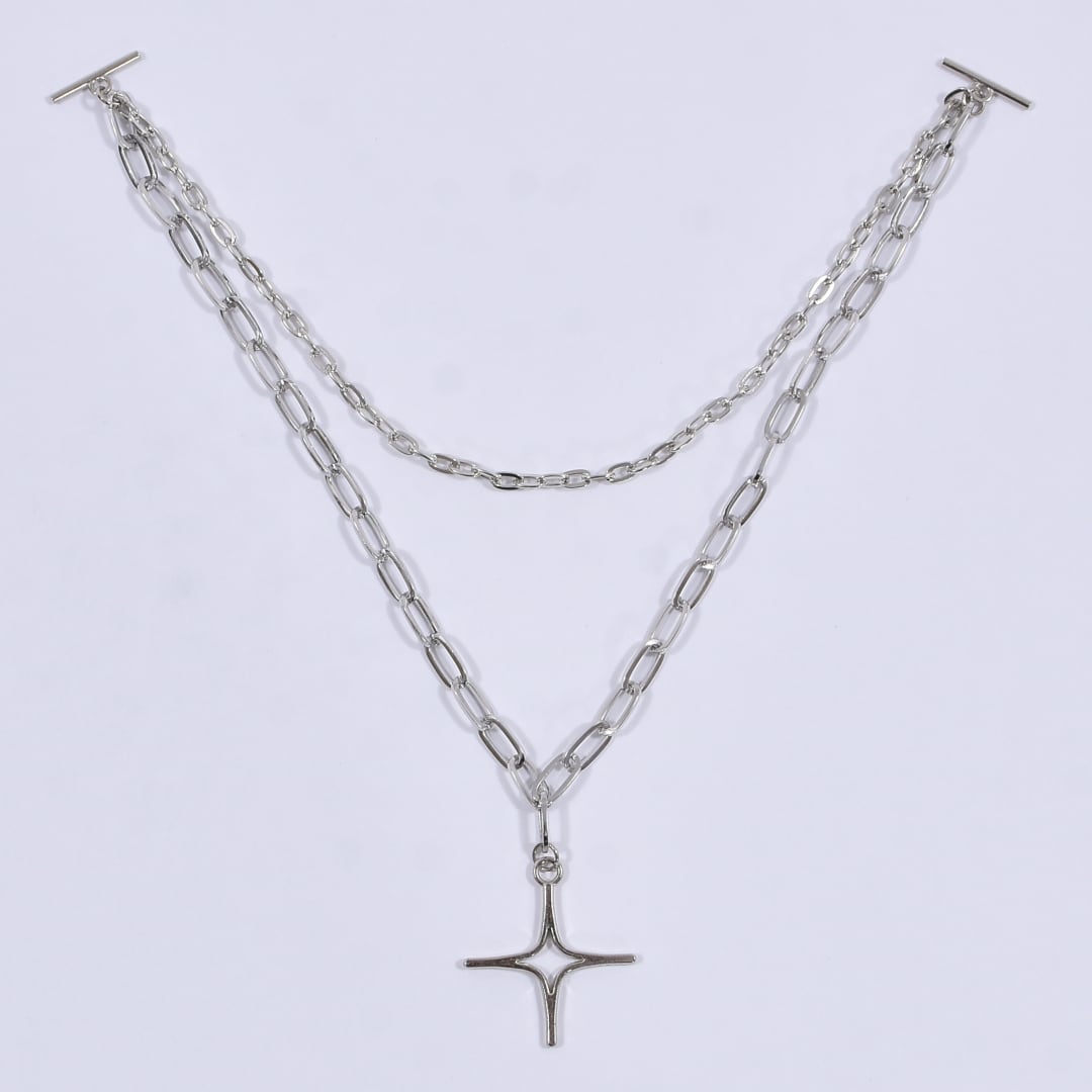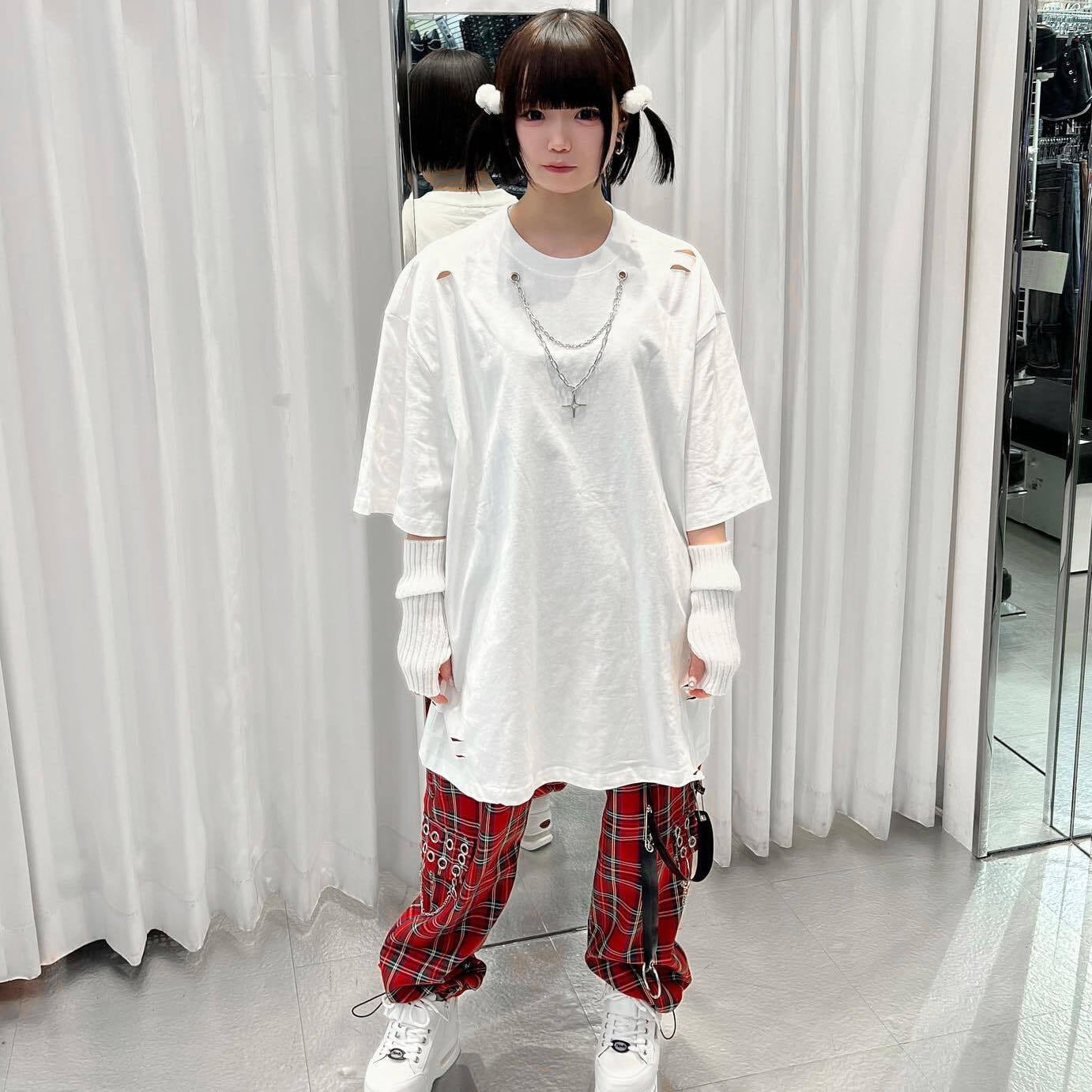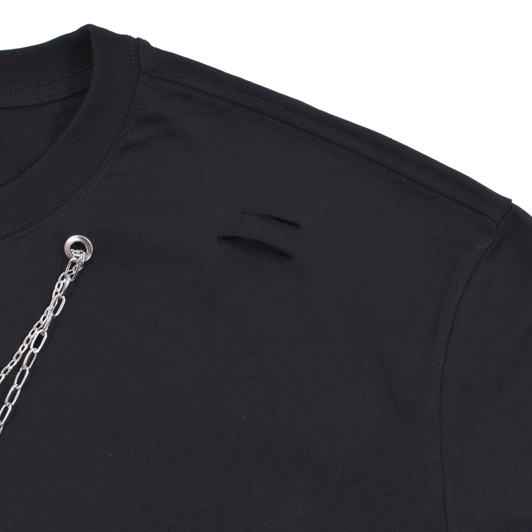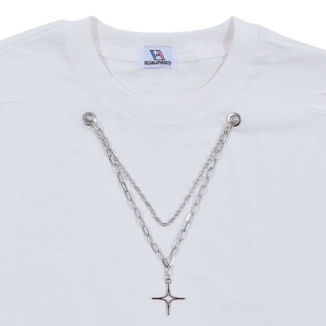 シンプルな無地Tにネックレスをドッキングしたユニークな一品。