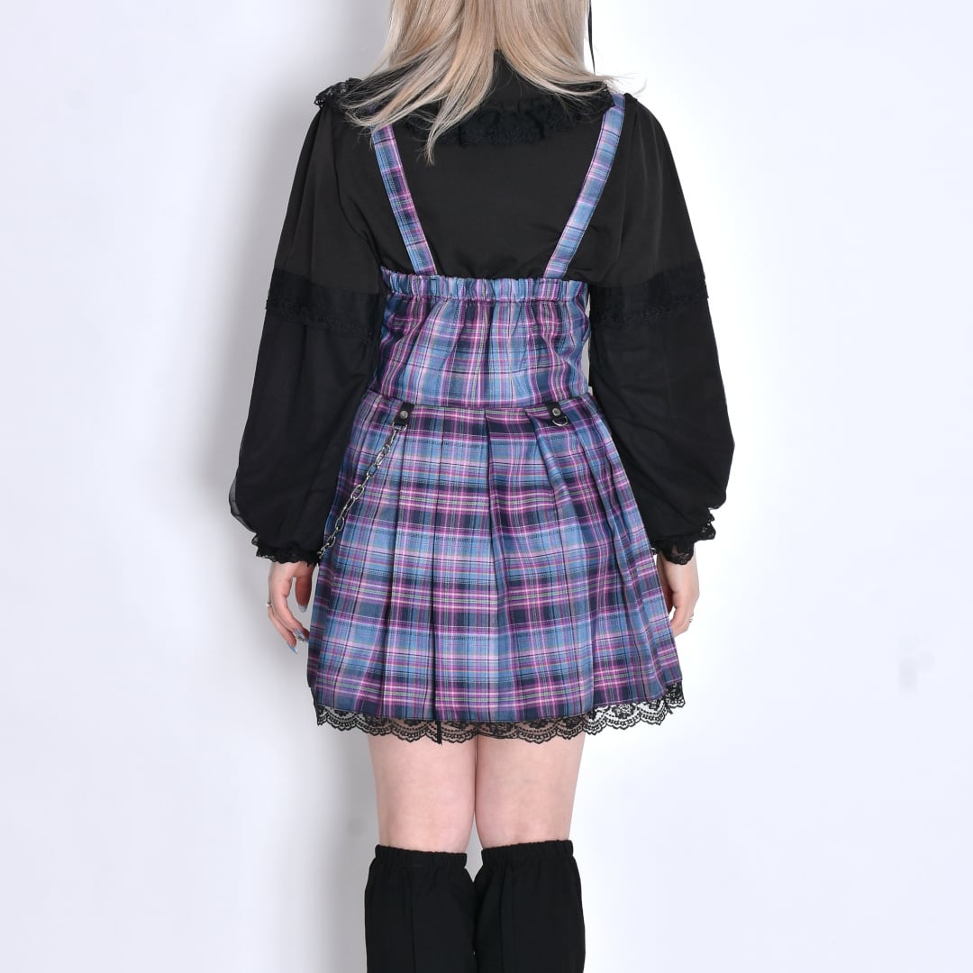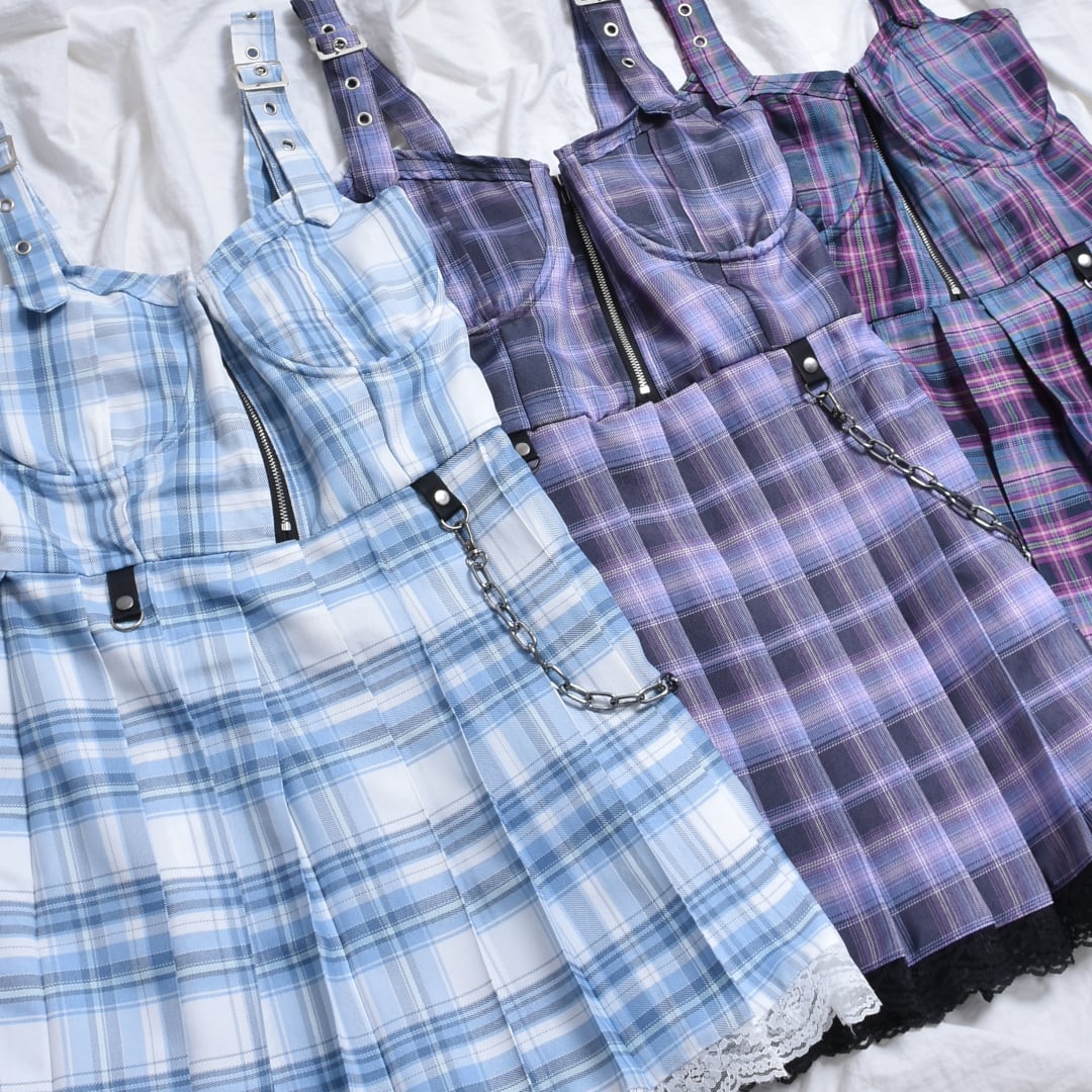 カラフルなチェック柄や裾のレースが可愛いワンピース