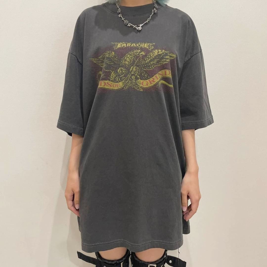 ヴィンテージ古着を彷彿させる、往年のバンT風のカッコいいプリントが印象的。