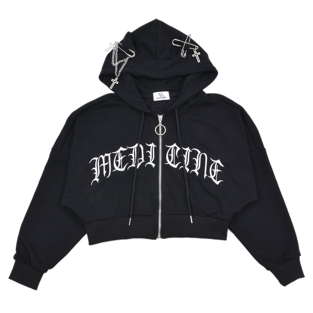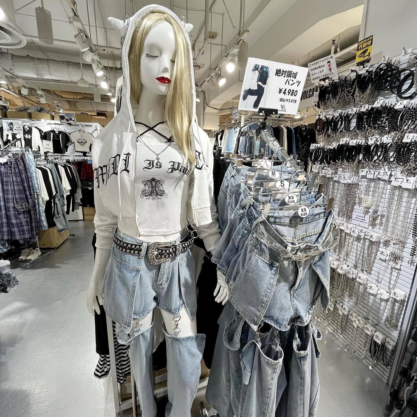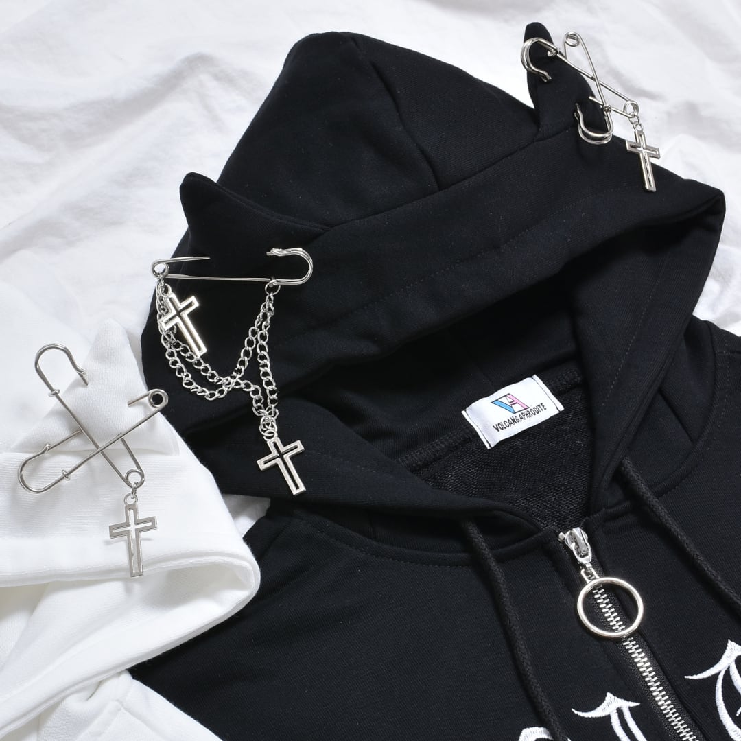 ネコ耳に付いたチェーンや安全ピンが刺激的なアクセント