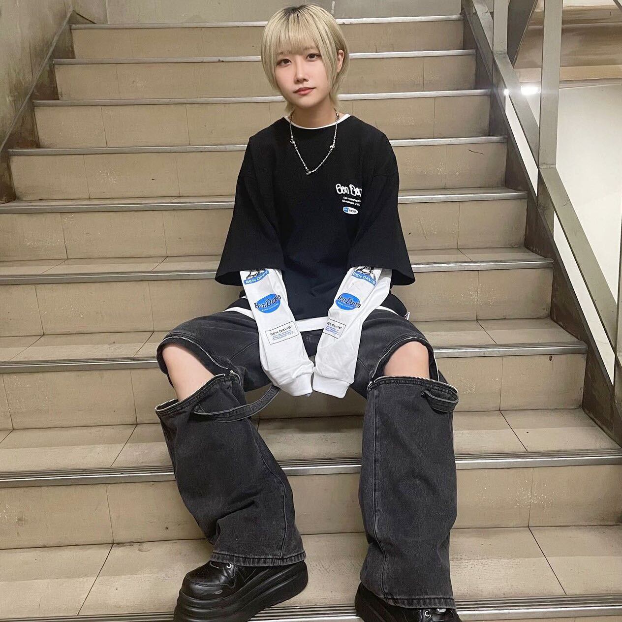 ・半袖Tシャツ(白)+ロングTシャツ(黒)