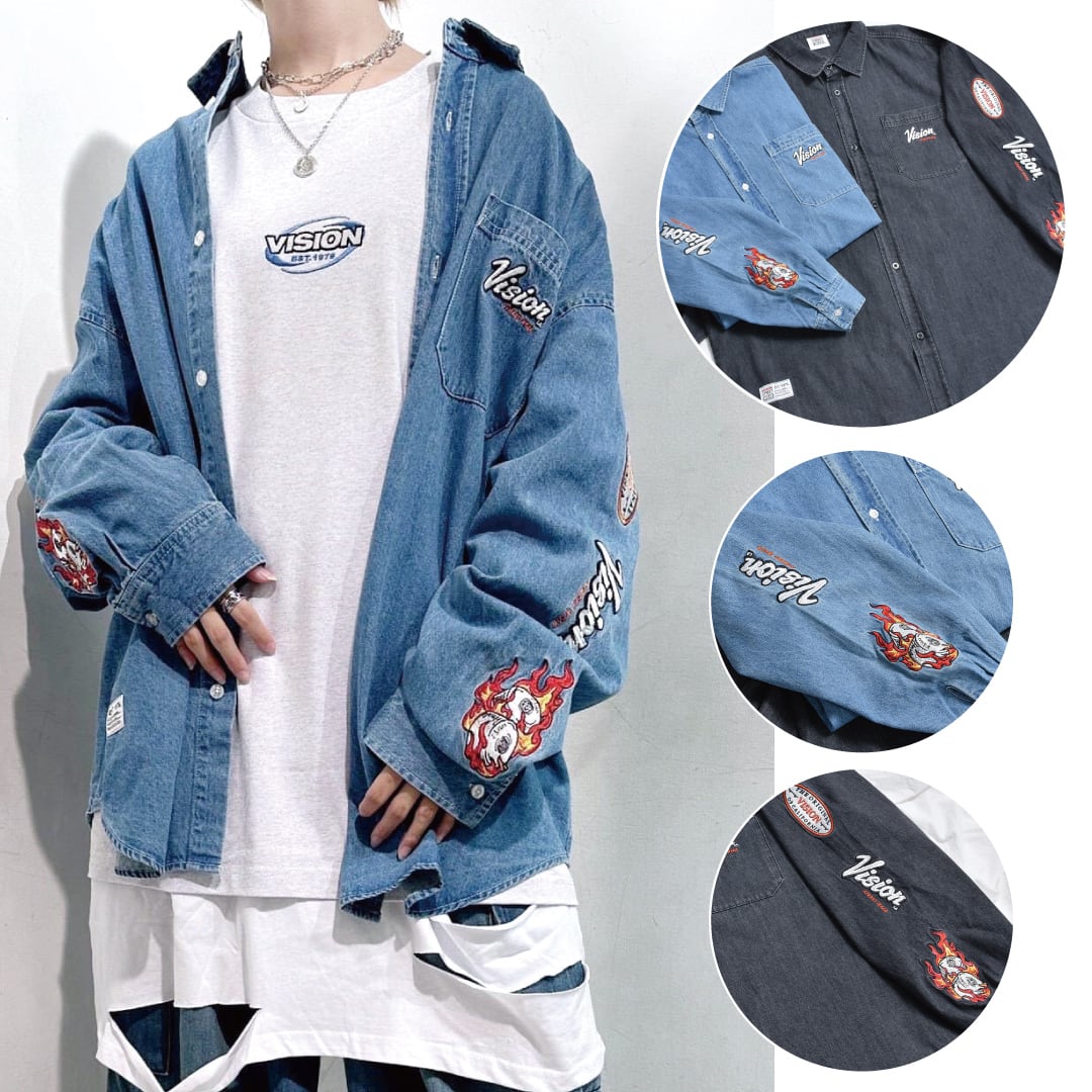 【50%OFF】VISION アーム刺繍デニムシャツ