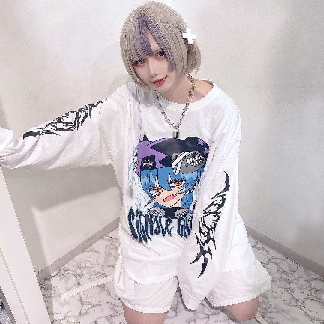 カラフルなサブカル少女、袖のトライバル柄がインパクト抜群。