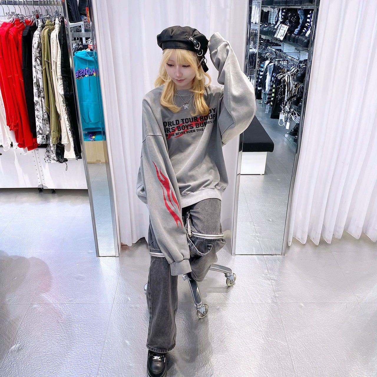 【55%OFF】超だぼ袖 FIREピグメントスウェット