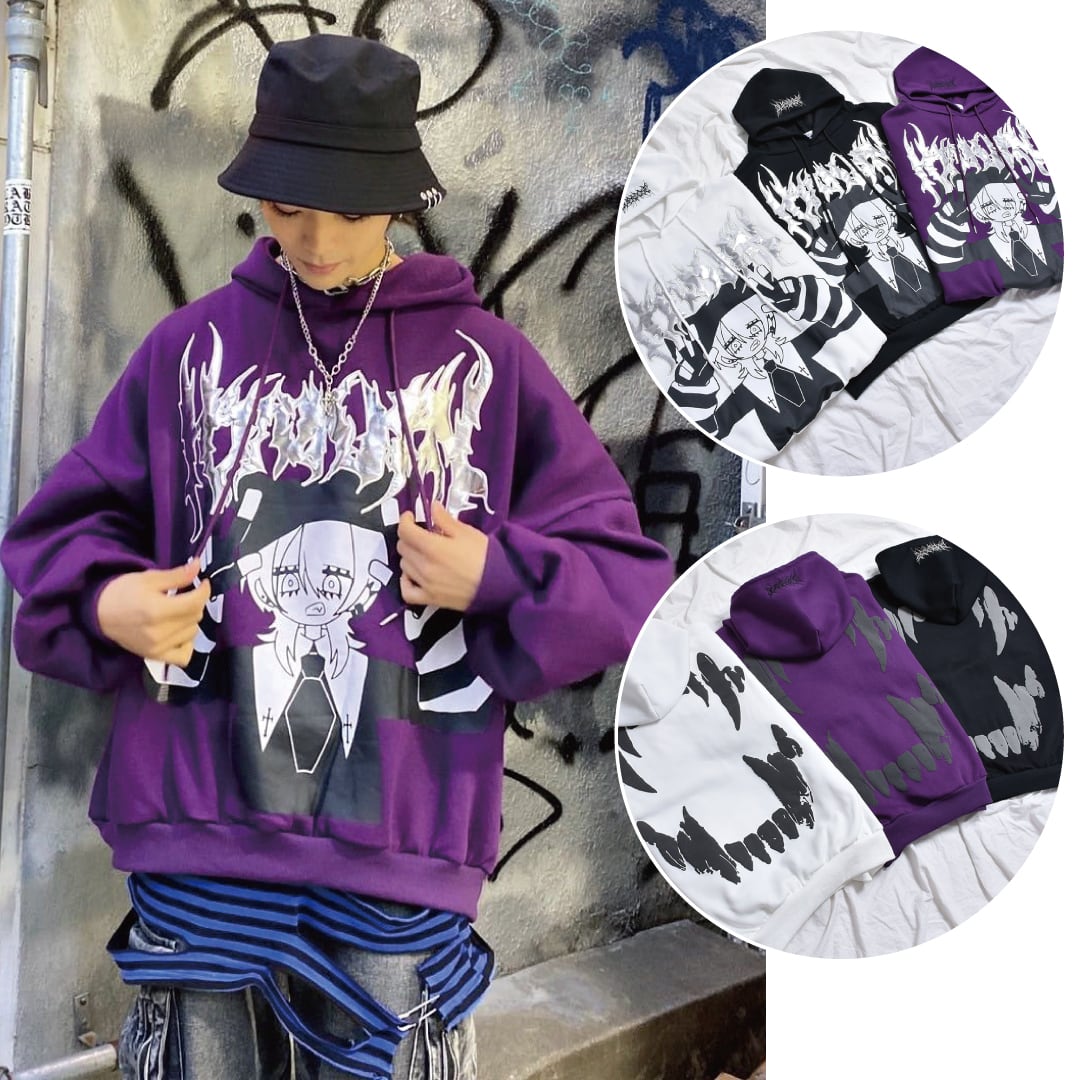 フードの刺繍、バックの牙プリントなど、サブカルなデザインを詰め込み♪