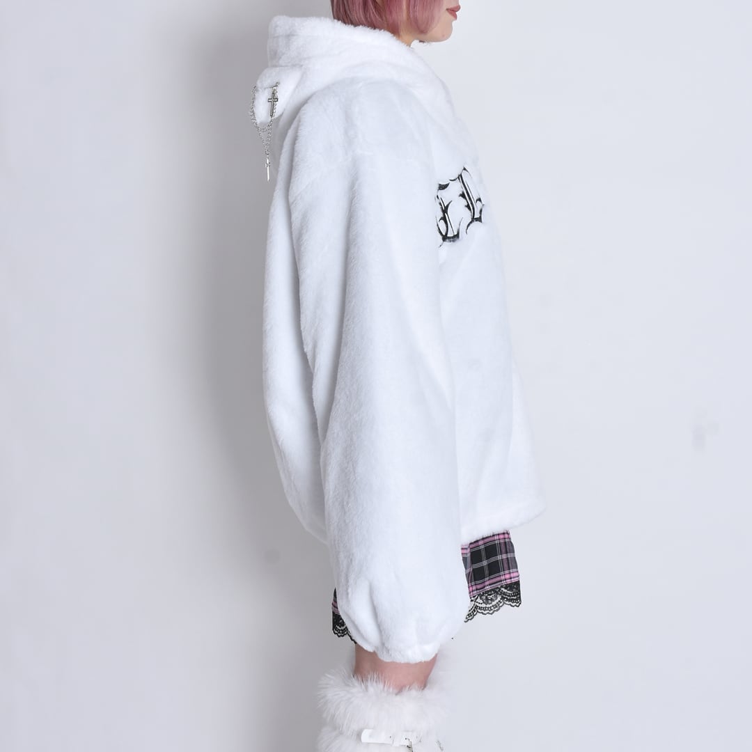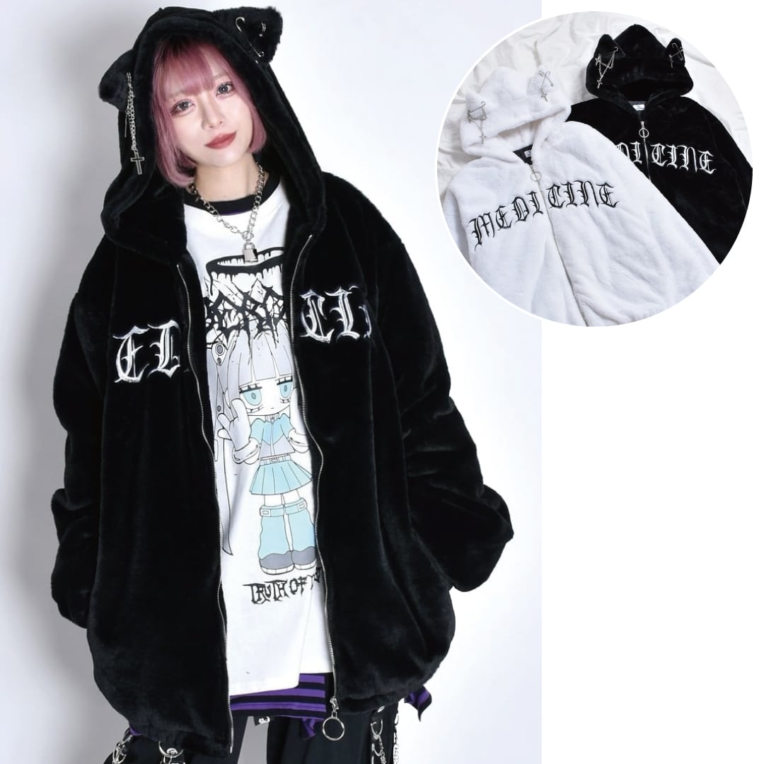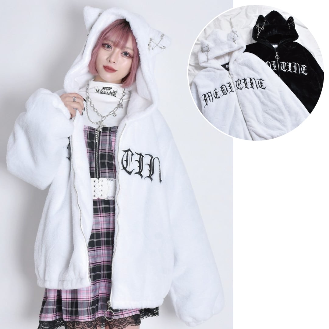 【10/8 再入荷!】ネコ耳ロゴファーBIGブルゾン(BLACK・WHITE)